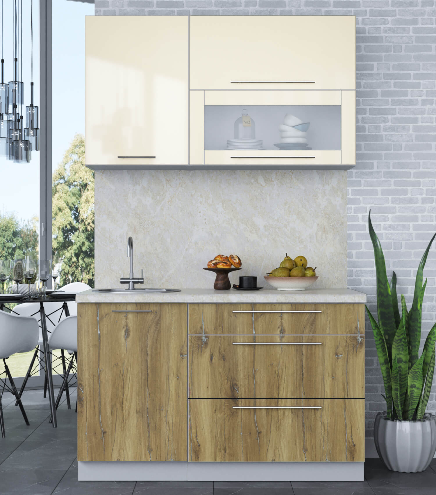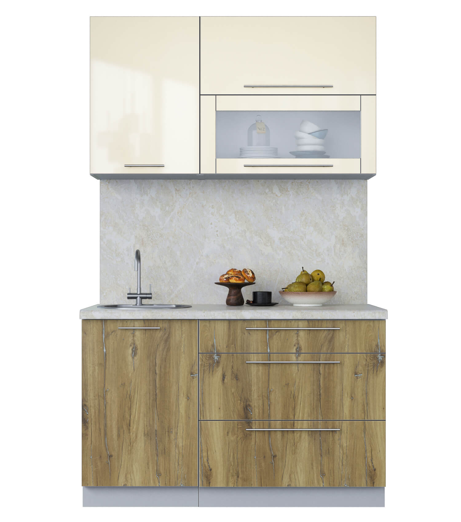 ГОТОВАЯ КУХНЯ ПЛАСТИК 1,3В (ВАНИЛЬ ГЛЯНЕЦ/ ДУБ ЭПОКСИД) - Yuta.by