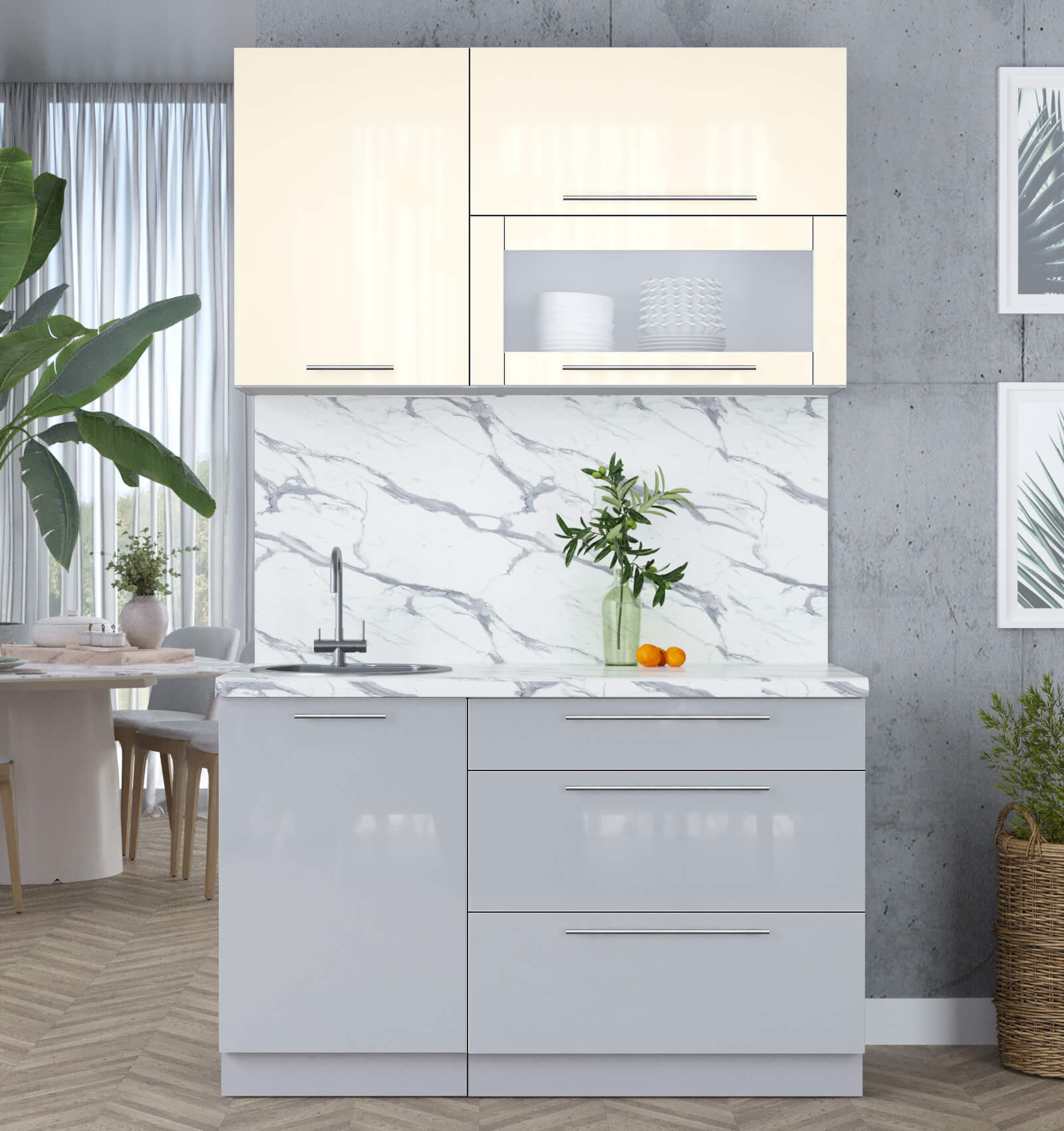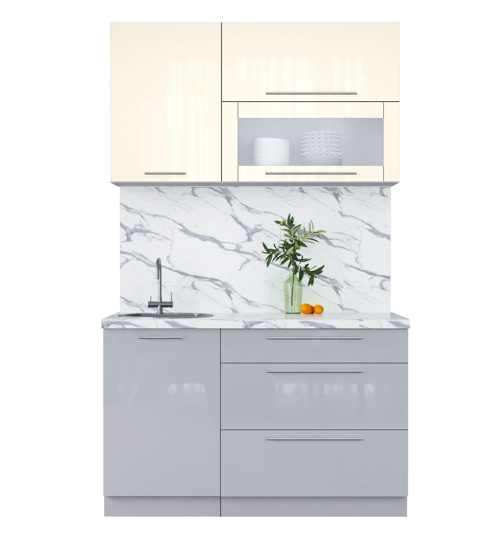 ГОТОВАЯ КУХНЯ ПЛАСТИК 1,3В (ВАНИЛЬ ГЛЯНЕЦ/ ТУМАННЫЙ ГЛЯНЕЦ) - Yuta.by