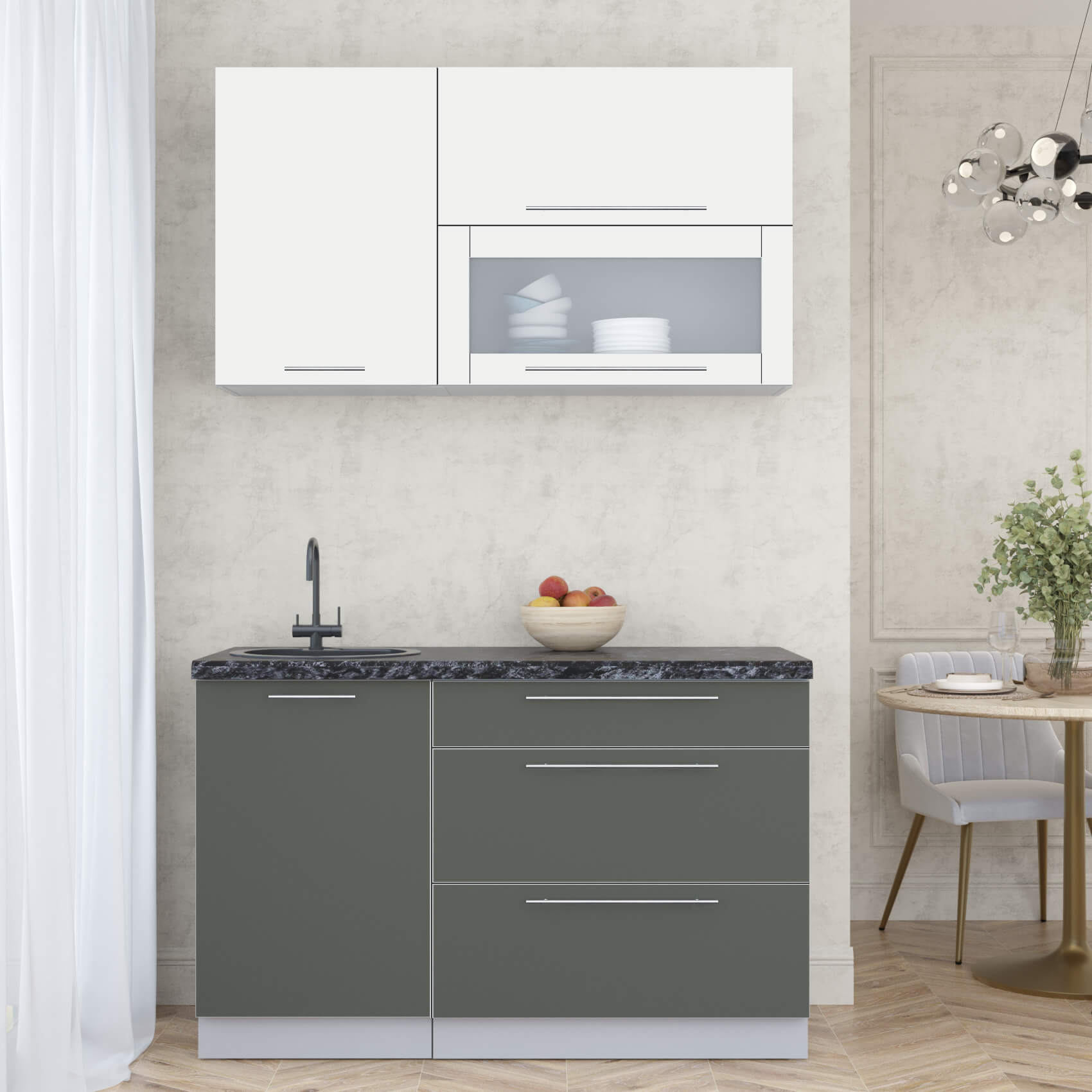 ГОТОВАЯ КУХНЯ ПЛАСТИК 1,3В (ЗЕФИРНЫЙ/ ШТОРМ) - Yuta.by