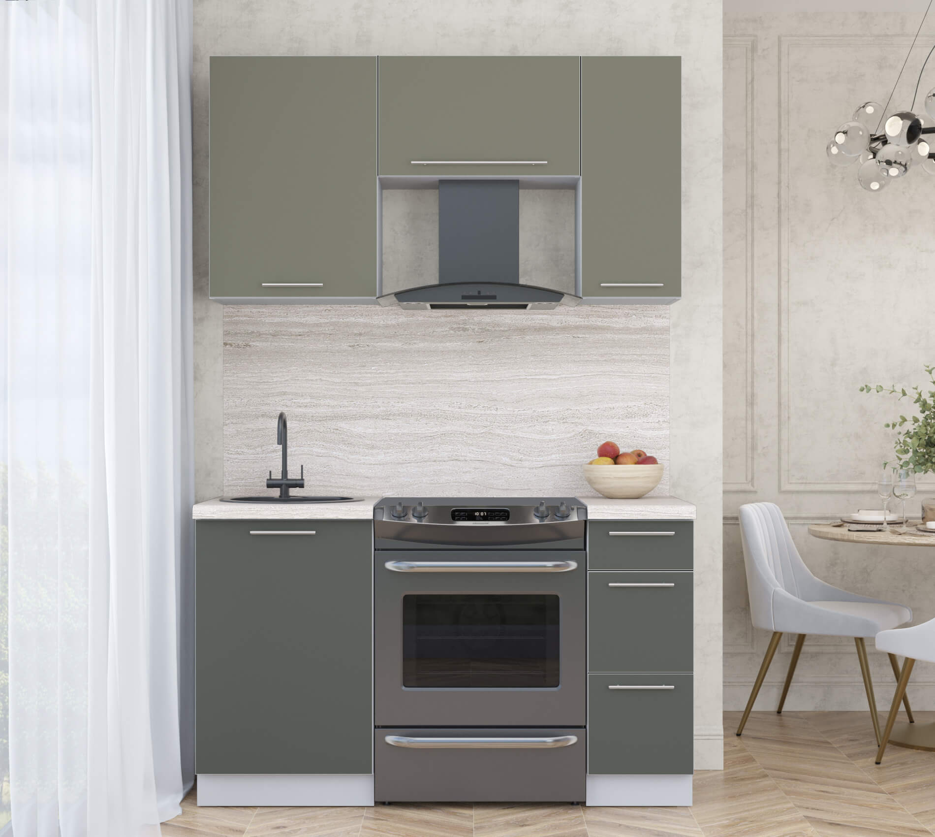 ГОТОВАЯ КУХНЯ ПЛАСТИК 1,4А (КВАРЦЕВЫЙ/ШТОРМ) - Yuta.by