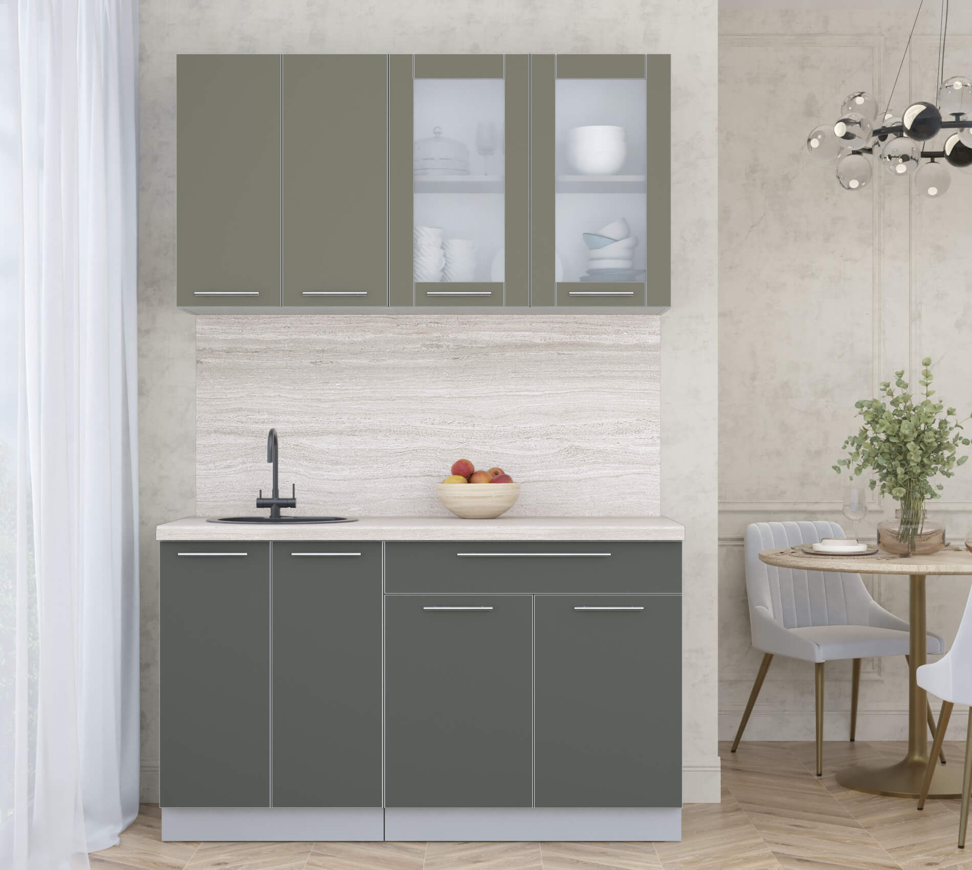 ГОТОВАЯ КУХНЯ ПЛАСТИК 1,4Б (КВАРЦЕВЫЙ/ ШТОРМ) - Yuta.by