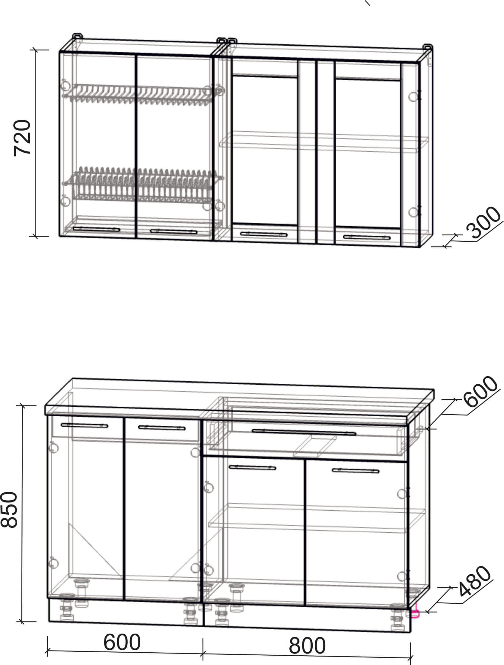 ГОТОВАЯ КУХНЯ ПЛАСТИК 1,4Б (ЛАТТЕ/ ЛАТТЕ) - Yuta.by