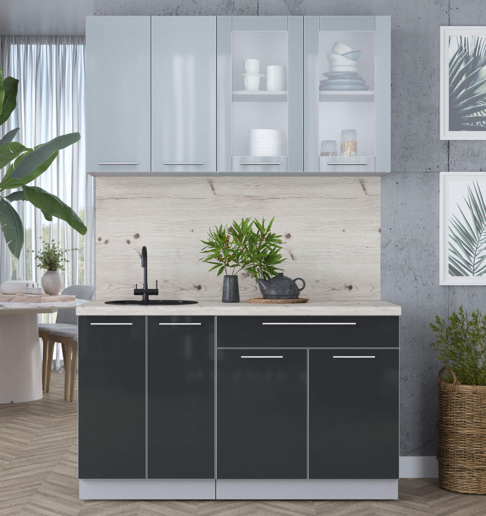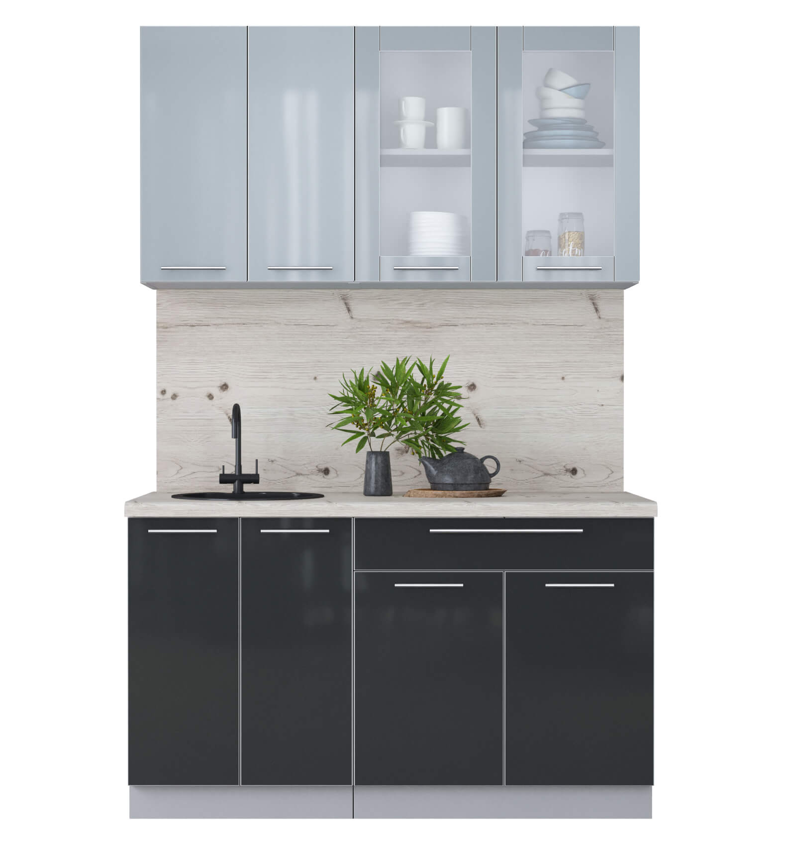 ГОТОВАЯ КУХНЯ ПЛАСТИК 1,4Б (ТУМАННЫЙ ГЛЯНЕЦ/ АНТРАЦИТ) - Yuta.by