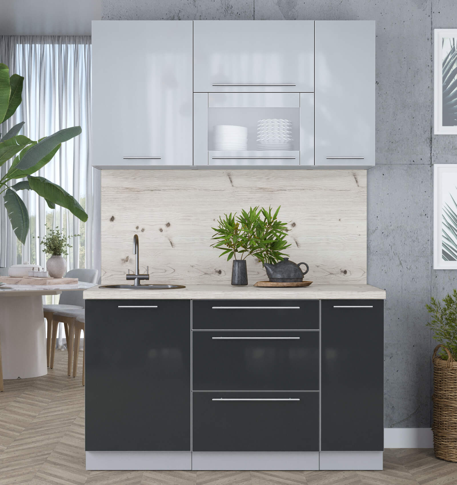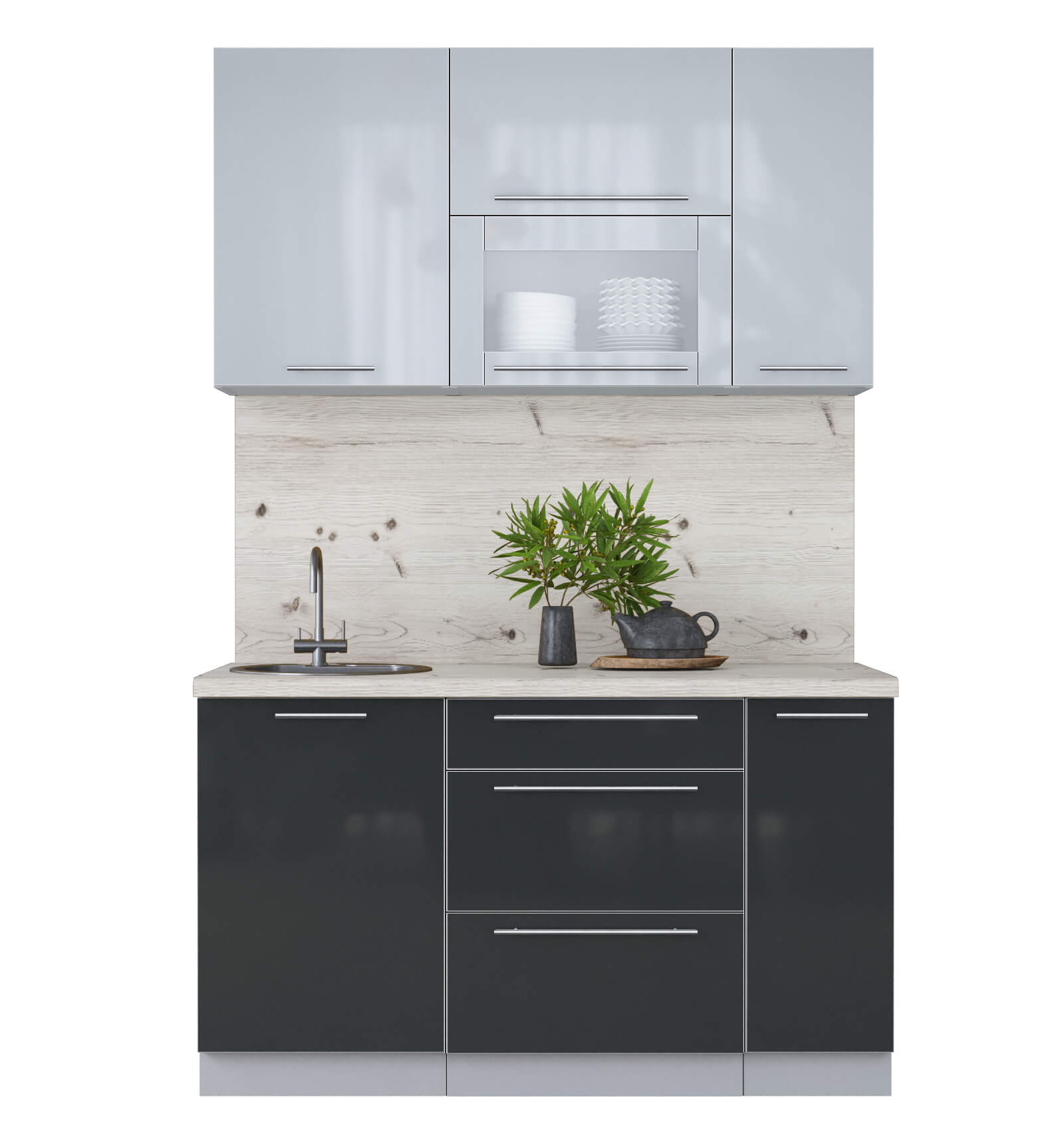 ГОТОВАЯ КУХНЯ ПЛАСТИК 1,4В (ТУМАННЫЙ ГЛЯНЕЦ/ АНТРАЦИТ) - Yuta.by