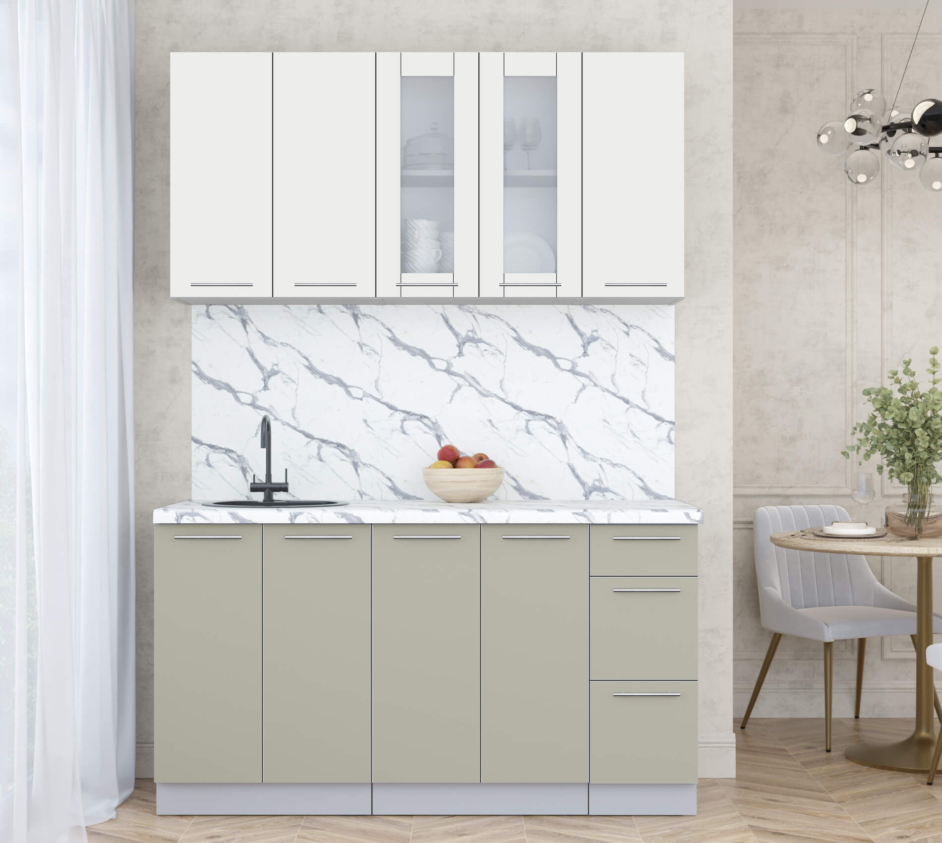 ГОТОВАЯ КУХНЯ ПЛАСТИК 1,5Б (ЗЕФИРНЫЙ/ ЛАТТЕ) - Yuta.by