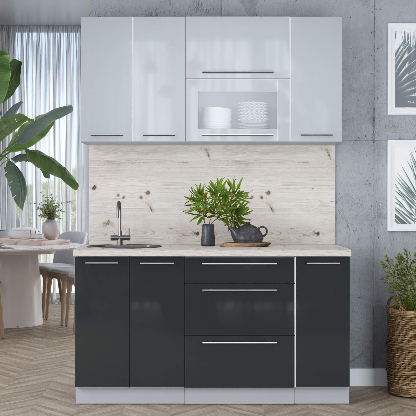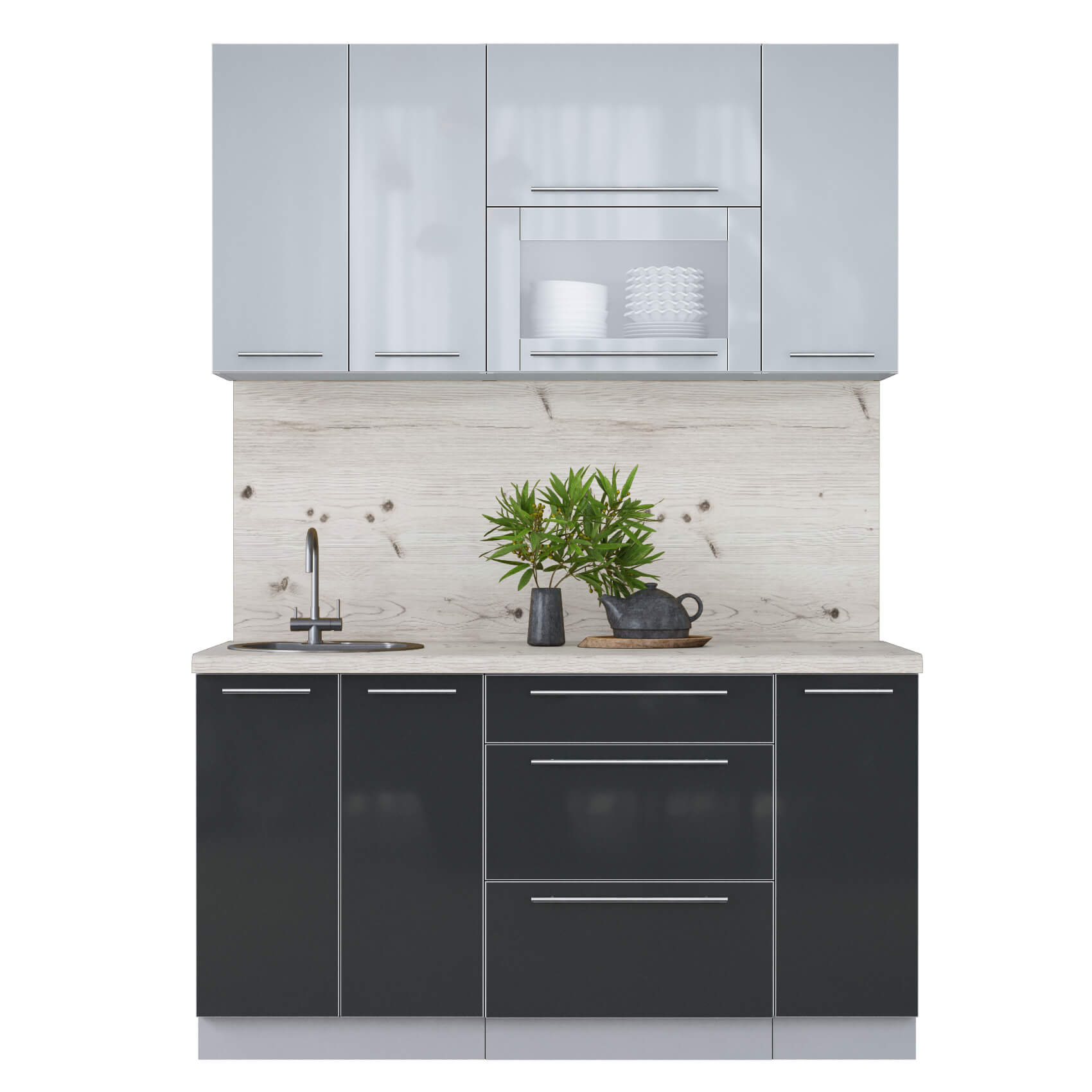 ГОТОВАЯ КУХНЯ ПЛАСТИК 1,5В (ТУМАННЫЙ ГЛЯНЕЦ/ АНТРАЦИТ) - Yuta.by
