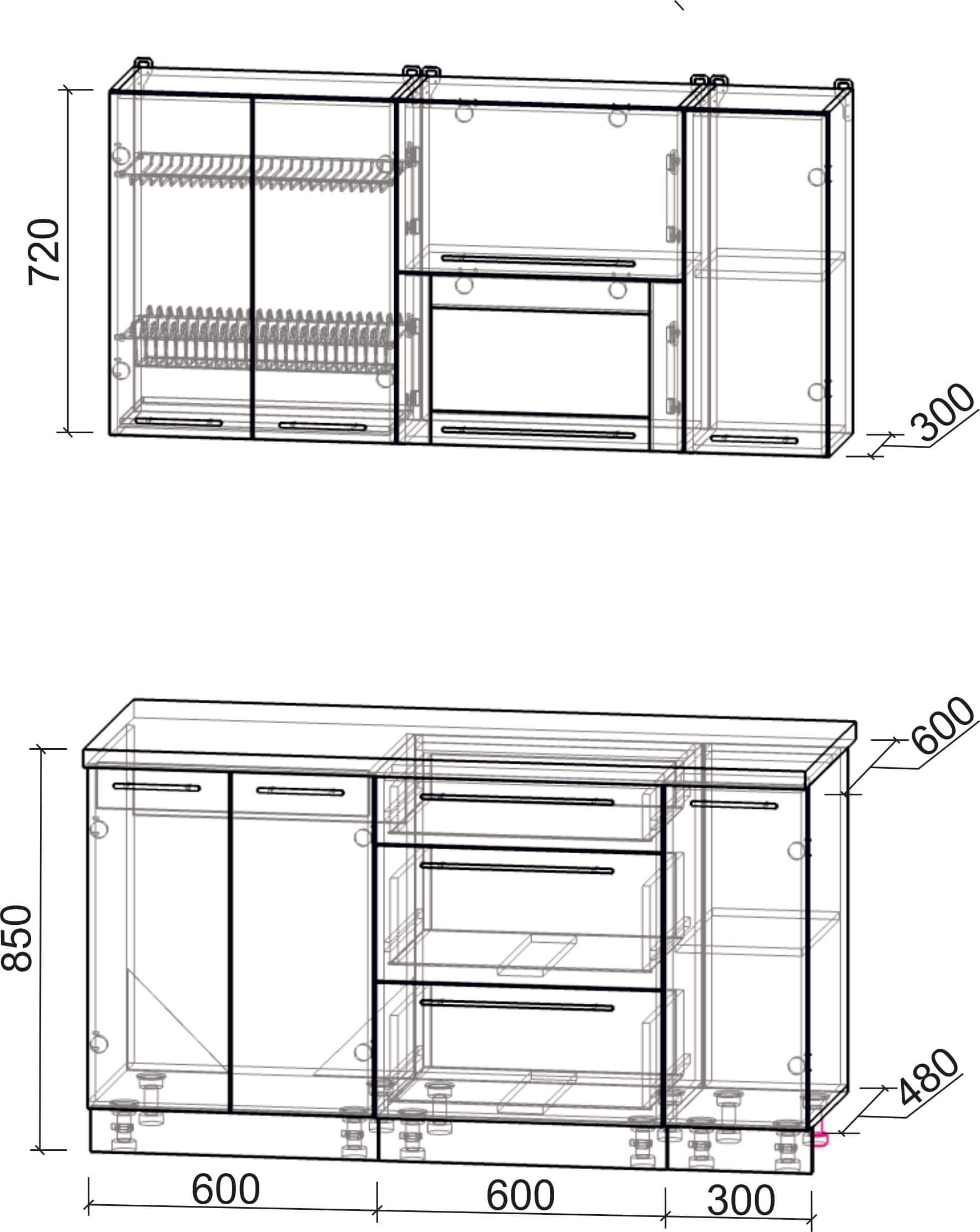 Высота нижних шкафов