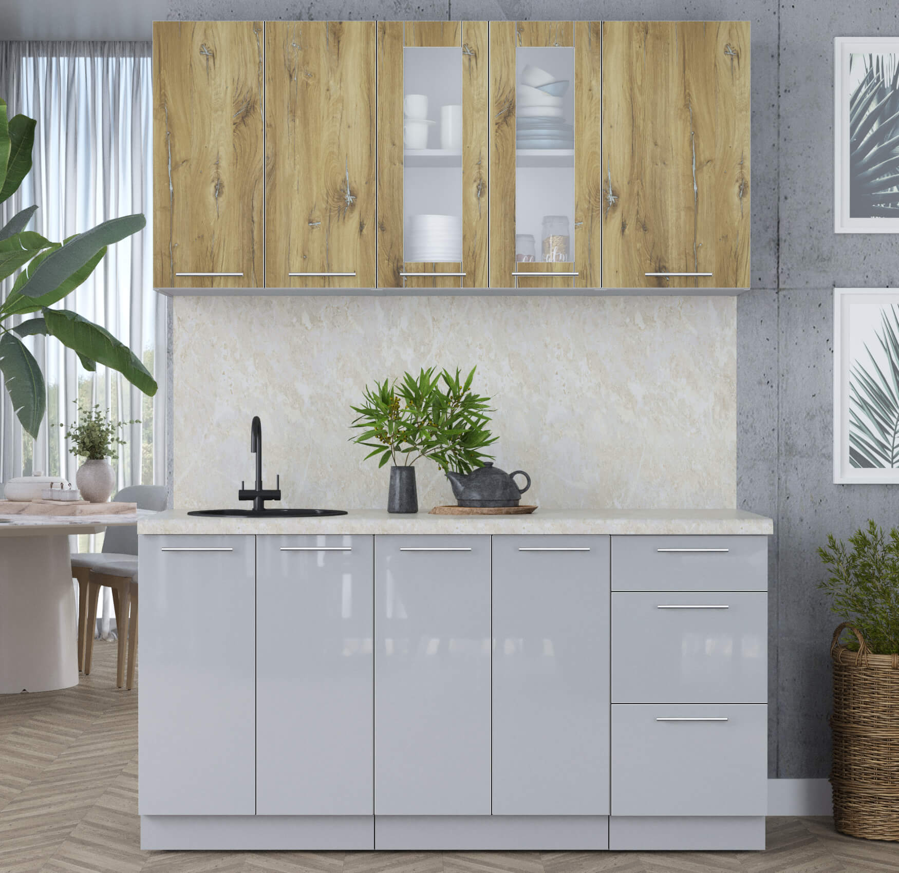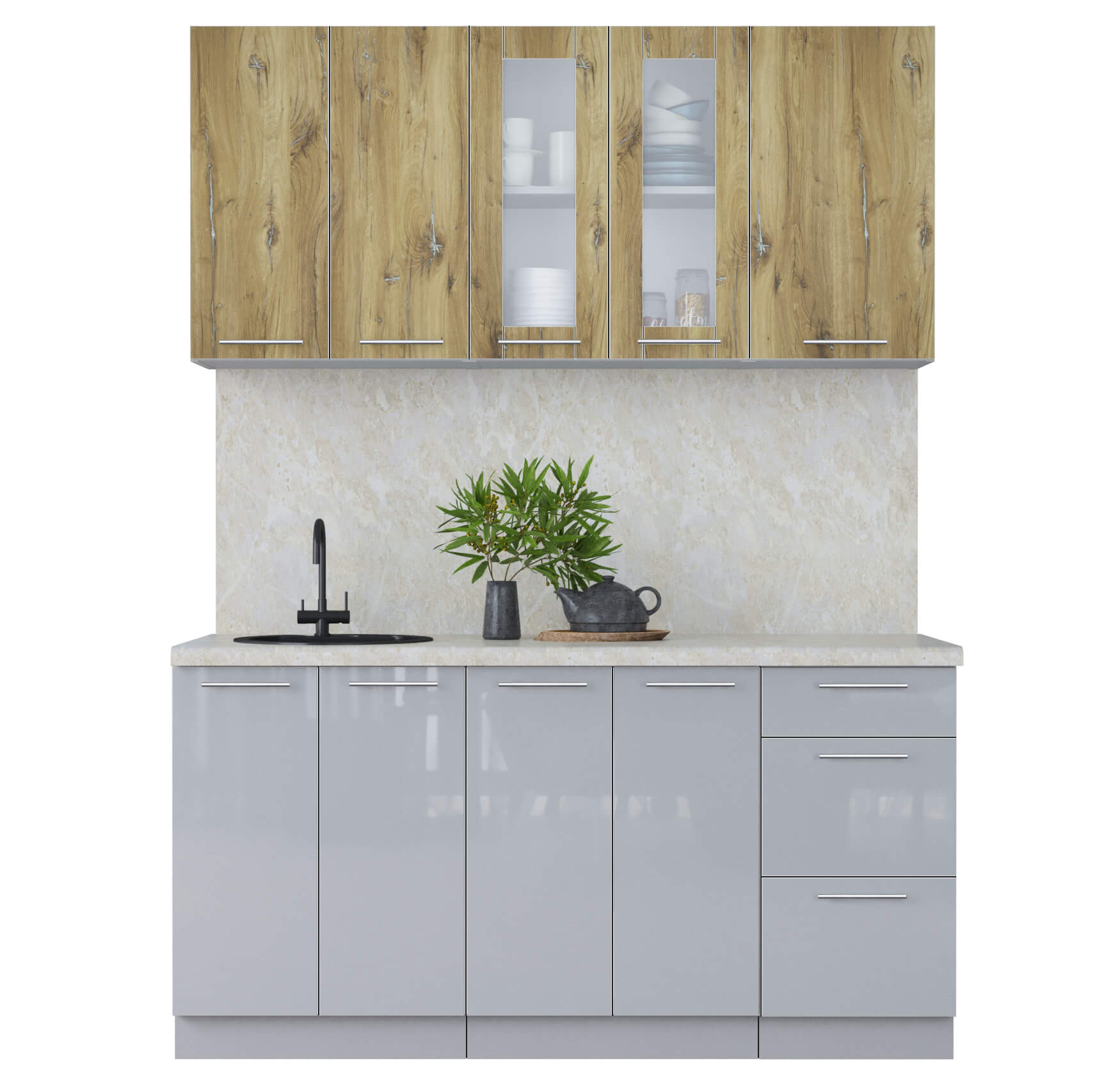 ГОТОВАЯ КУХНЯ ПЛАСТИК 1,6Б (ДУБ ЭПОКСИД/ ТУМАННЫЙ ГЛЯНЕЦ) - Yuta.by