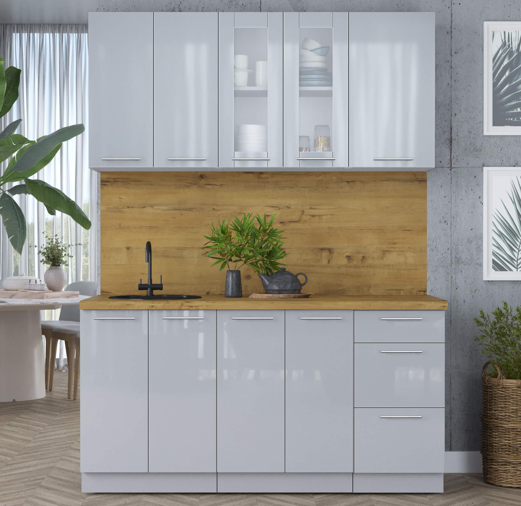 ГОТОВАЯ КУХНЯ ПЛАСТИК 1,6Б (ТУМАННЫЙ ГЛЯНЕЦ/ ТУМАННЫЙ ГЛЯНЕЦ) - Yuta.by