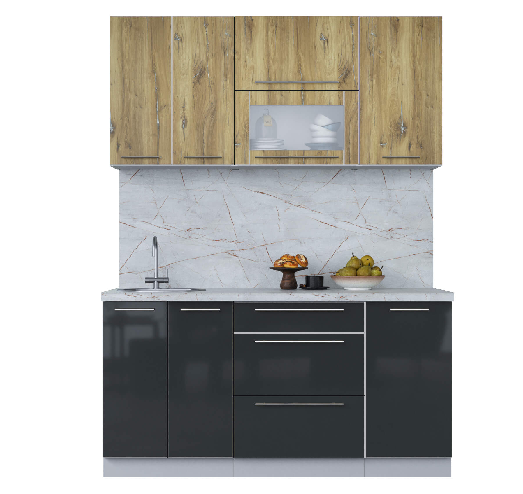 ГОТОВАЯ КУХНЯ ПЛАСТИК 1,6В (ДУБ ЭПОКСИД/ АНТРАЦИТ) - Yuta.by