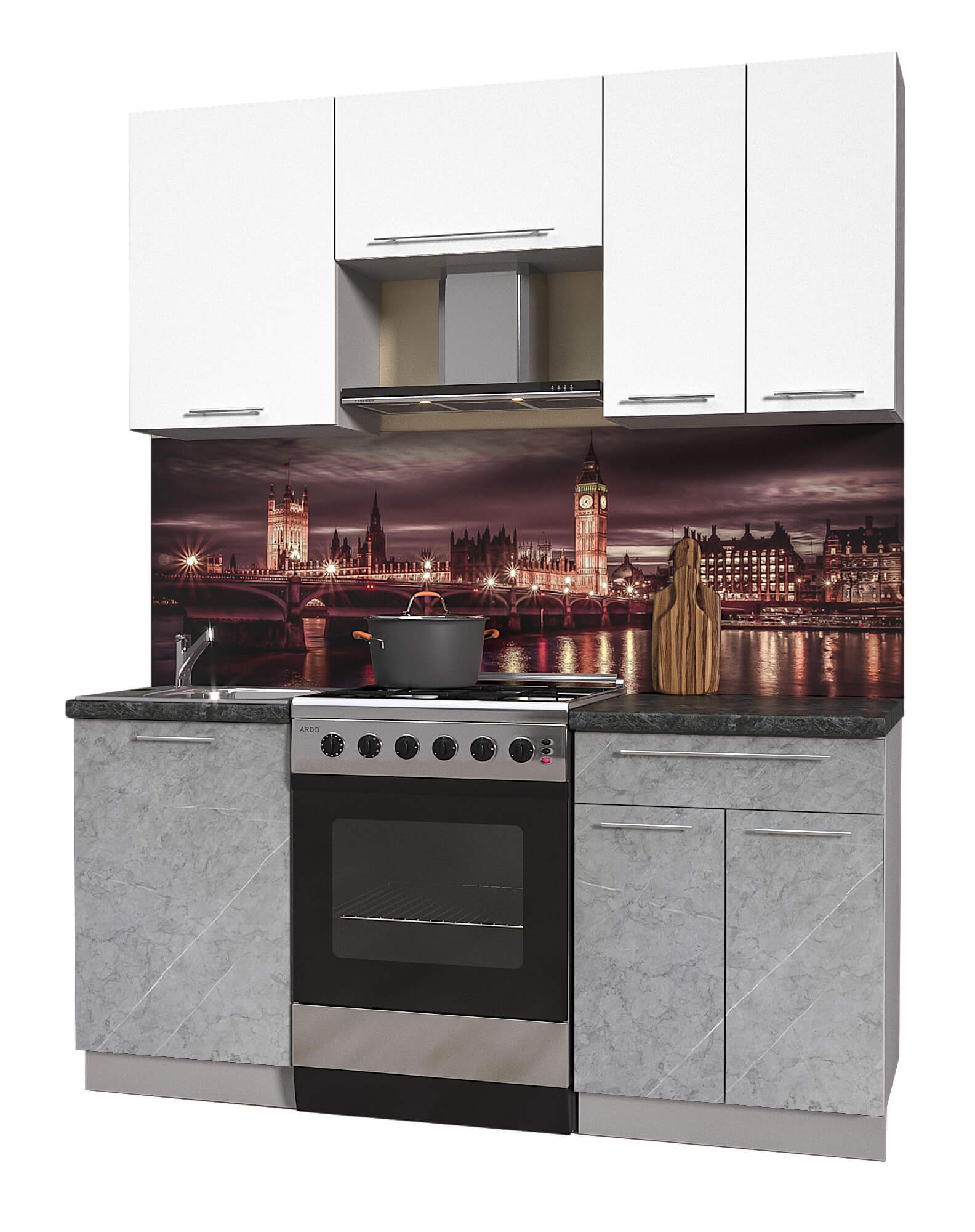 ГОТОВАЯ КУХНЯ ПЛАСТИК 1,7А (БЕЛЫЙ ГЛЯНЕЦ/ МРАМОР) - Yuta.by