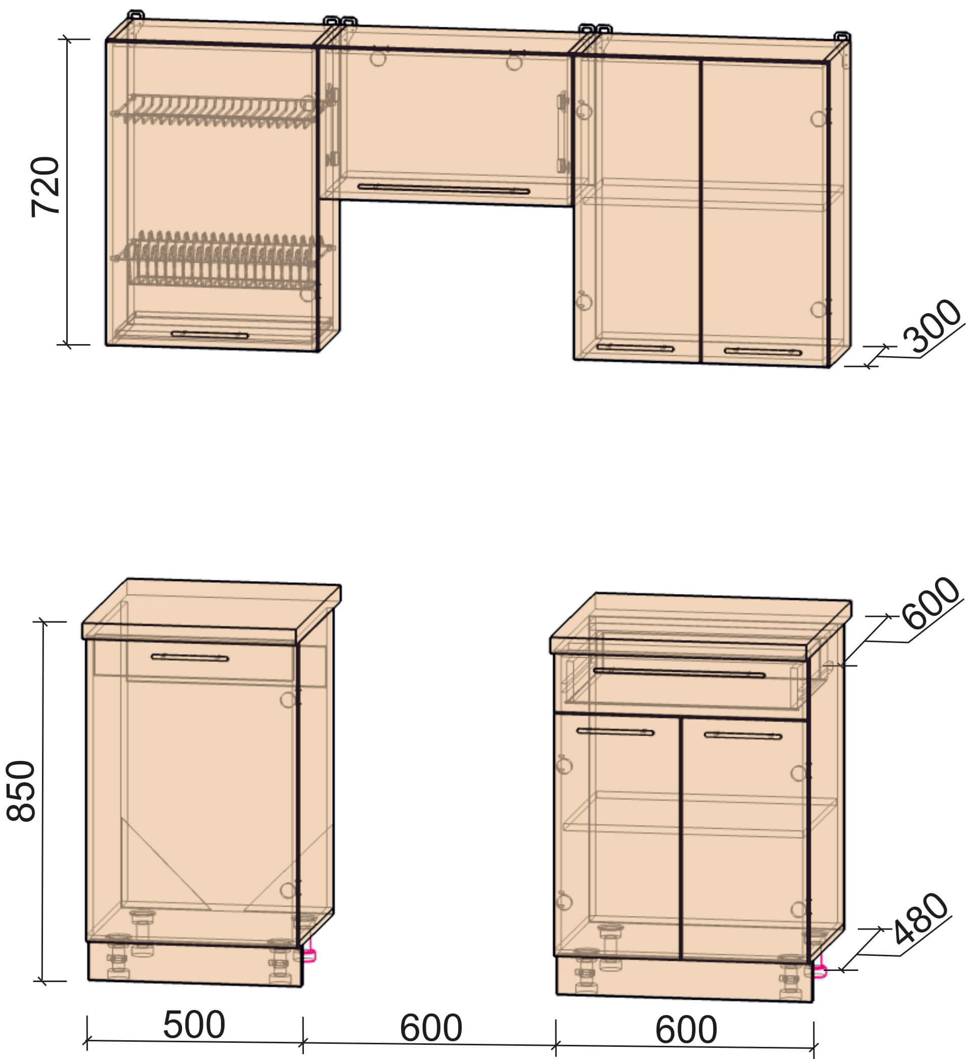 Высота нижних шкафов