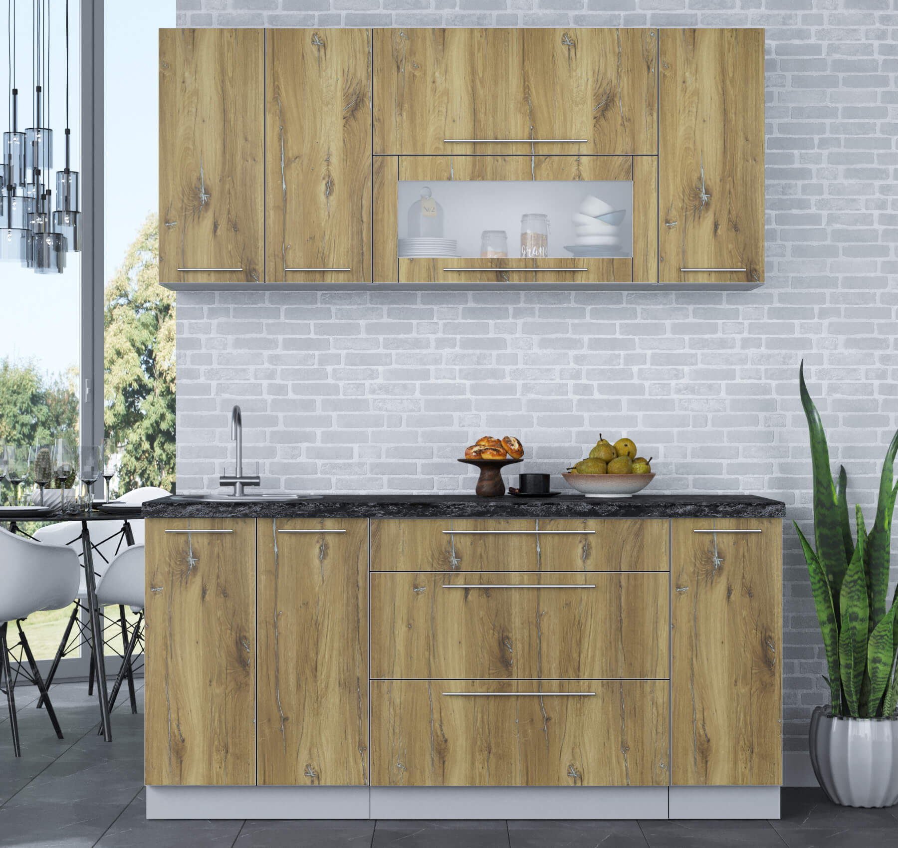 ГОТОВАЯ КУХНЯ ПЛАСТИК 1,7В (ДУБ ЭПОКСИД/ ДУБ ЭПОКСИД) - Yuta.by