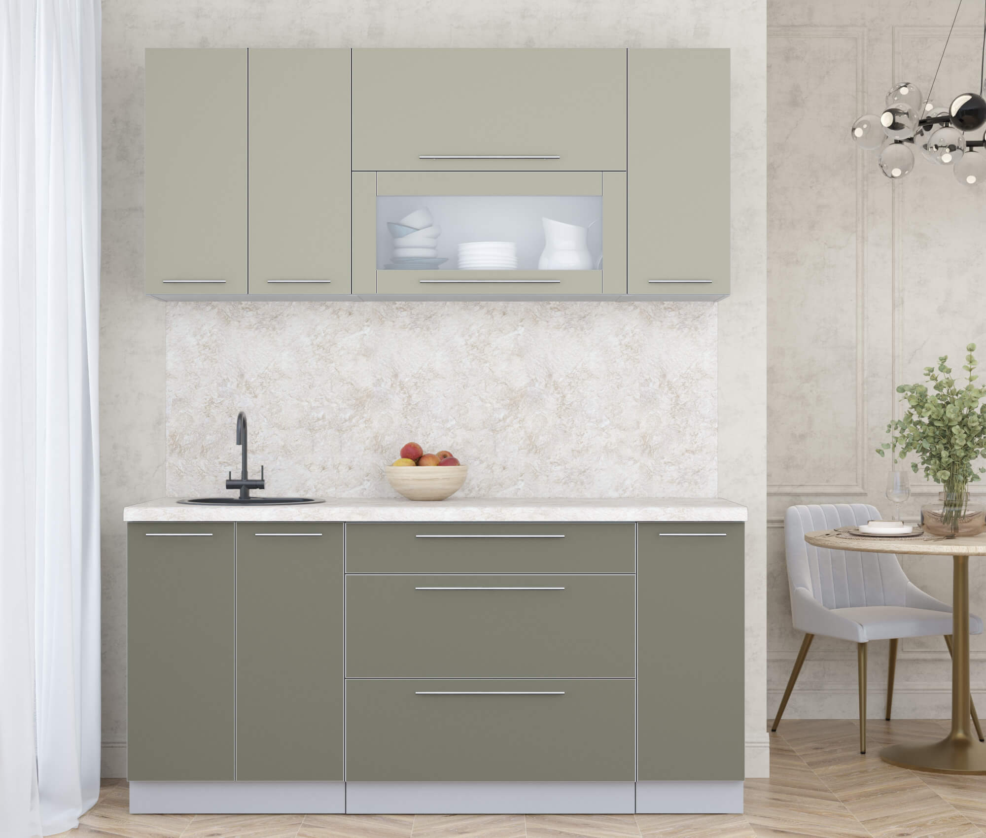 ГОТОВАЯ КУХНЯ ПЛАСТИК 1,7В (ЛАТТЕ/ КВАРЦЕВЫЙ) - Yuta.by