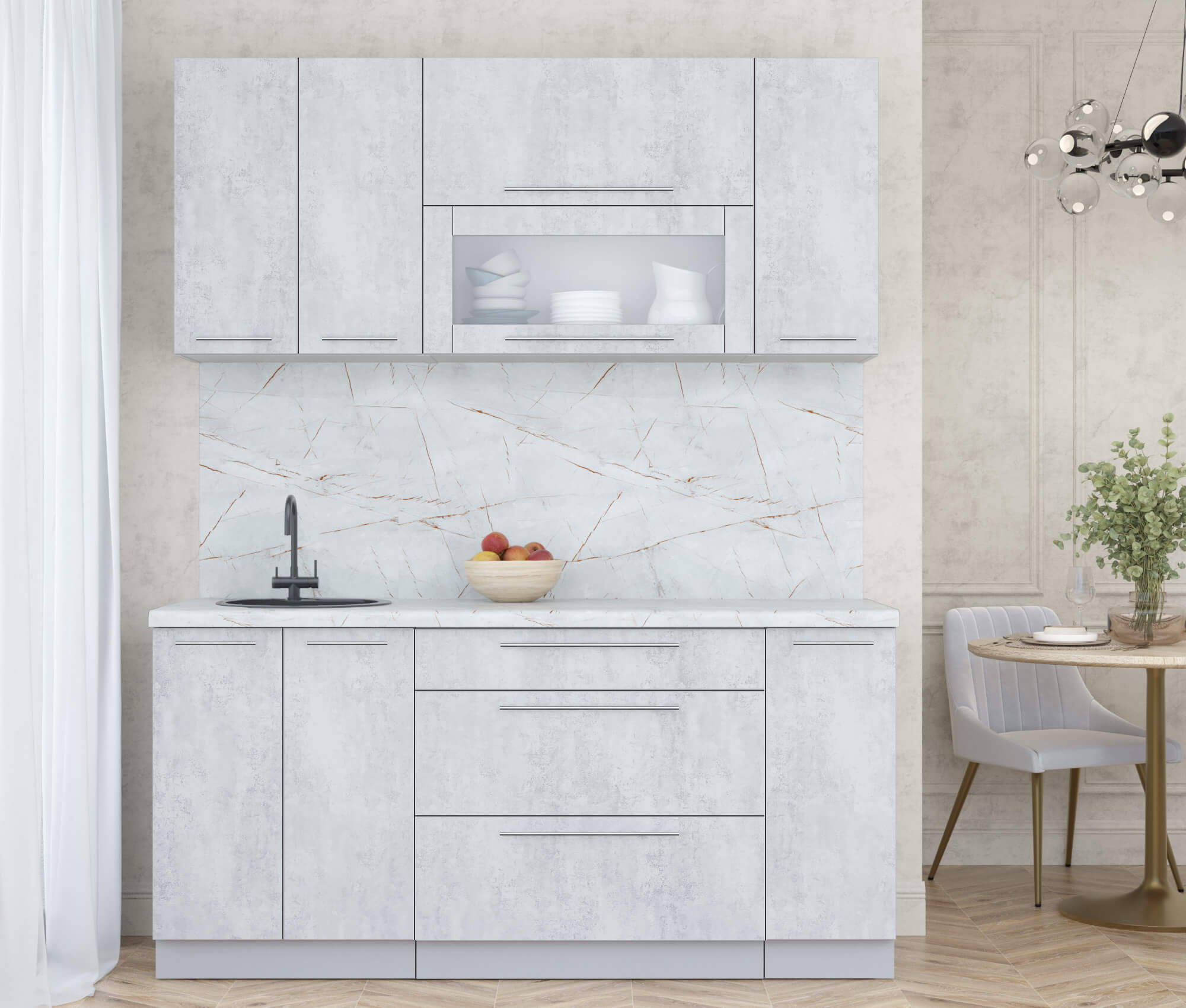 ГОТОВАЯ КУХНЯ ПЛАСТИК 1,7В (ОКСИД СВЕТЛЫЙ/ ОКСИД СВЕТЛЫЙ) - Yuta.by
