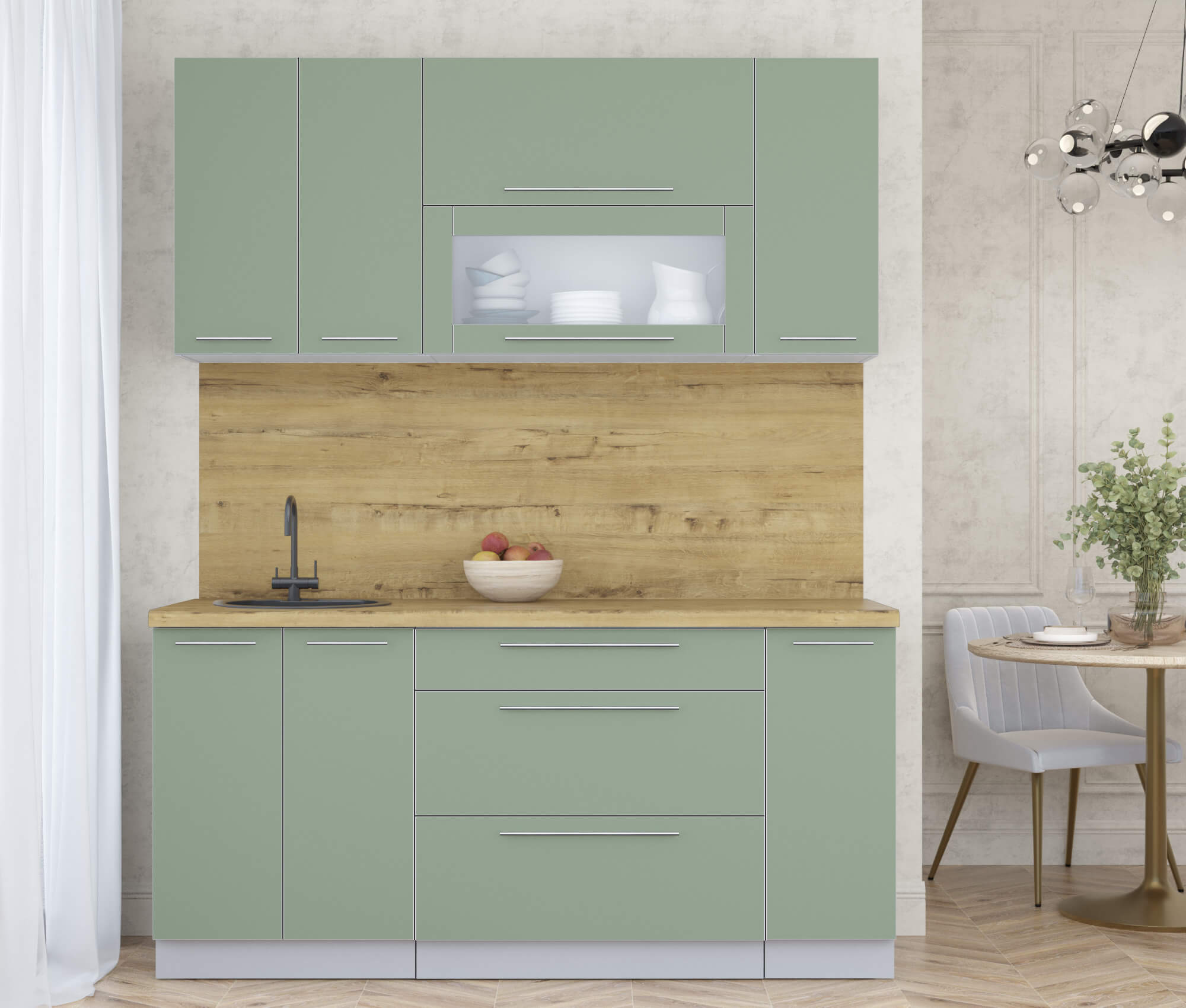 ГОТОВАЯ КУХНЯ ПЛАСТИК 1,7В (ПОЛЫНЬ/ ПОЛЫНЬ) - Yuta.by