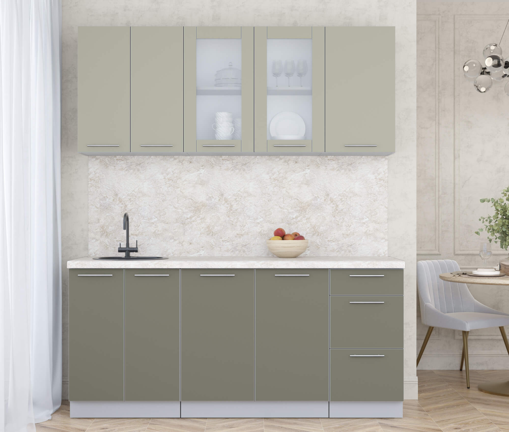 ГОТОВАЯ КУХНЯ ПЛАСТИК 1,8Б (ЛАТТЕ/ КВАРЦЕВЫЙ) - Yuta.by