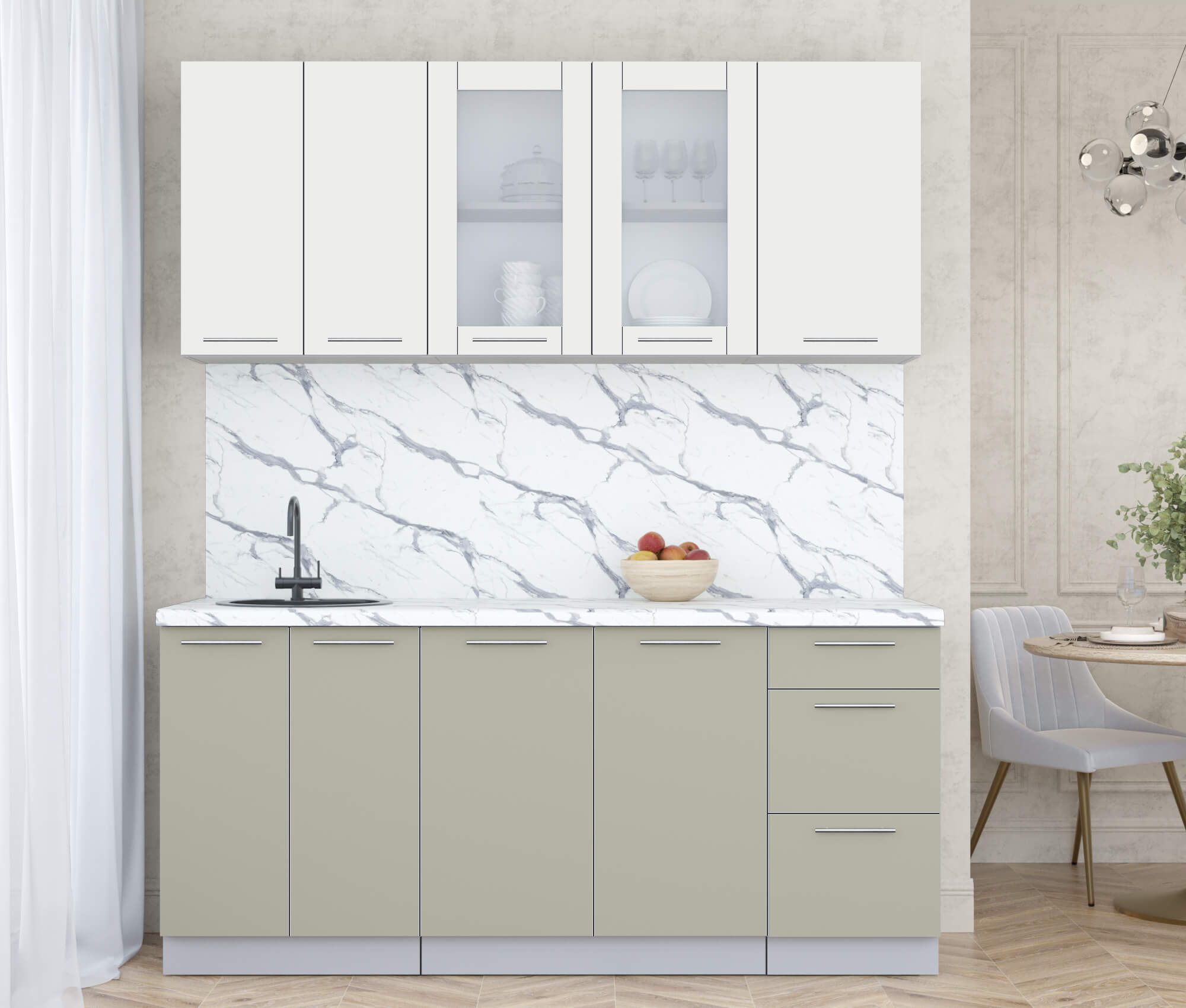 ГОТОВАЯ КУХНЯ ПЛАСТИК 1,8Б (ЗЕФИРНЫЙ/ ЛАТТЕ) - Yuta.by