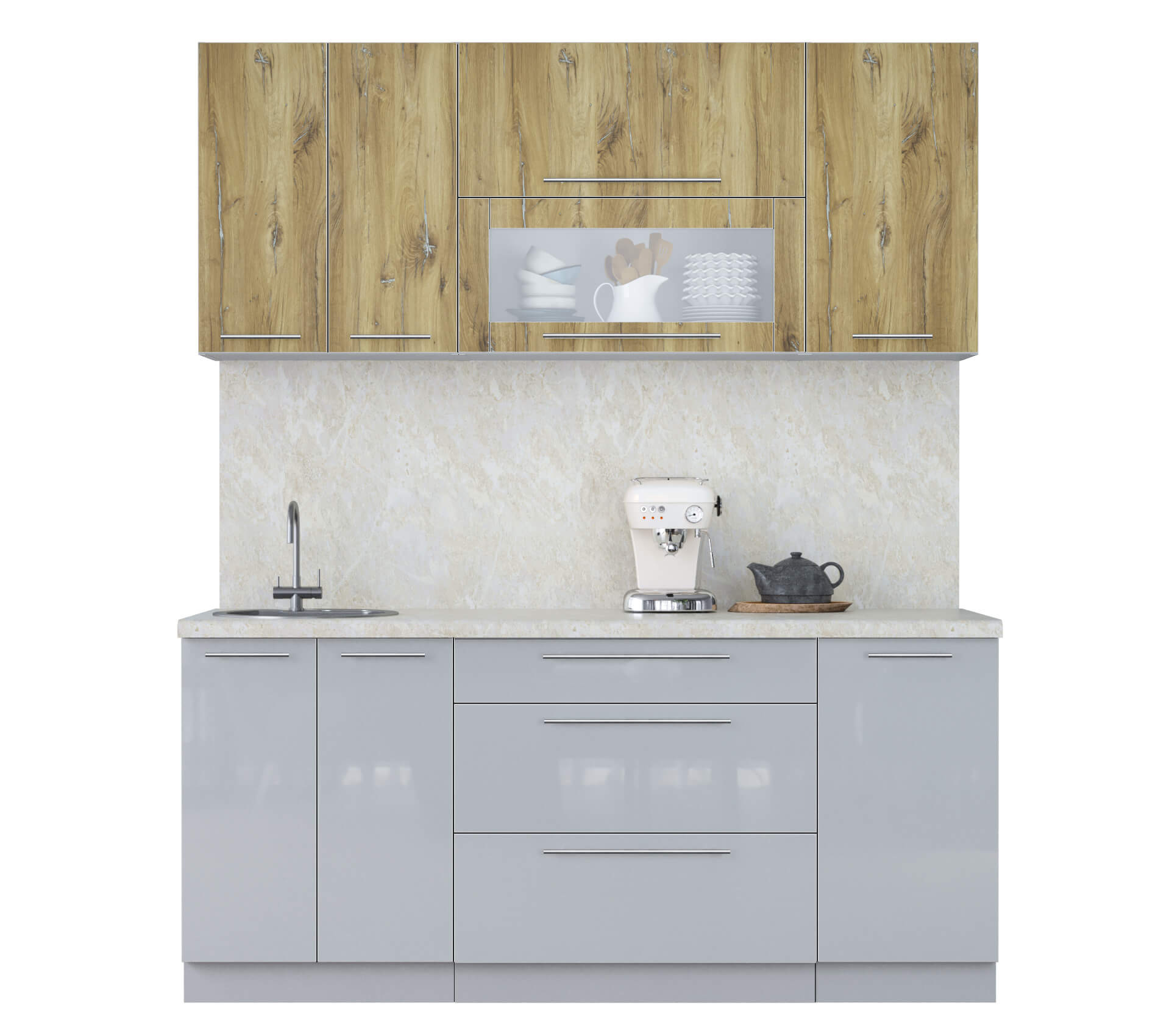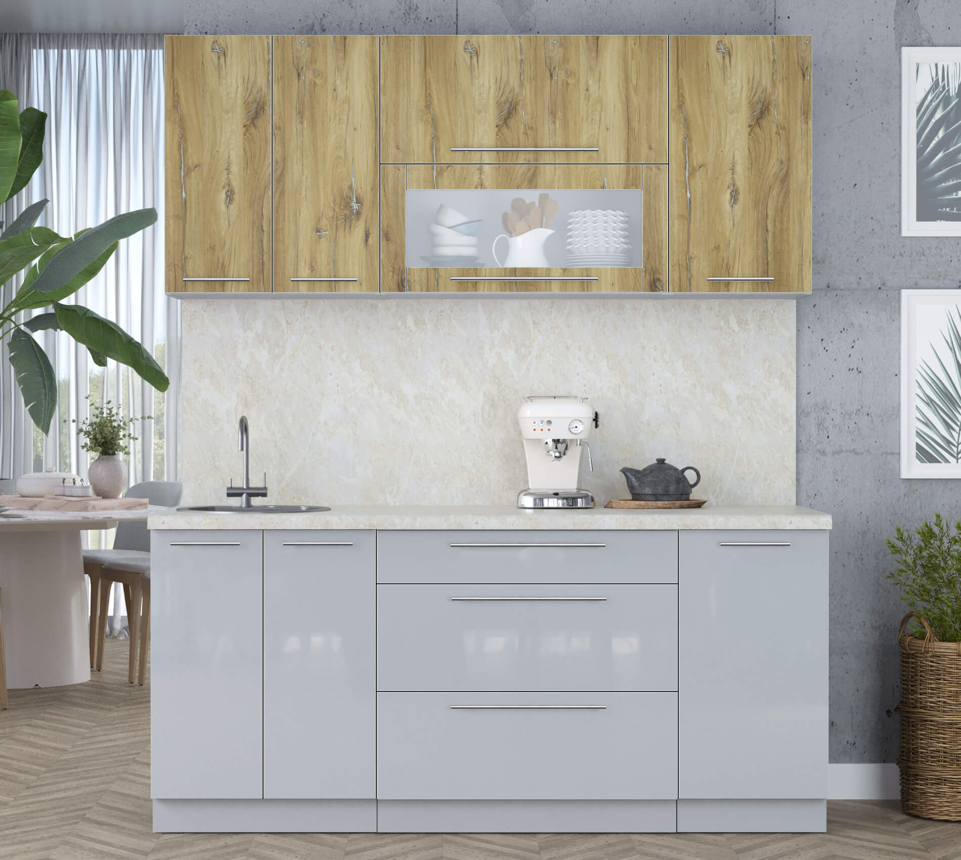 ГОТОВАЯ КУХНЯ ПЛАСТИК 1,8В (ДУБ ЭПОКСИД/ ТУМАННЫЙ ГЛЯНЕЦ) - Yuta.by