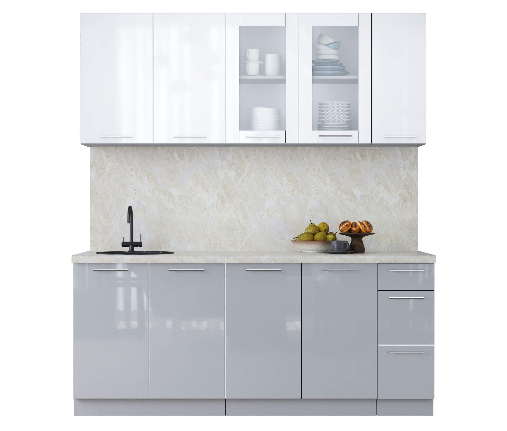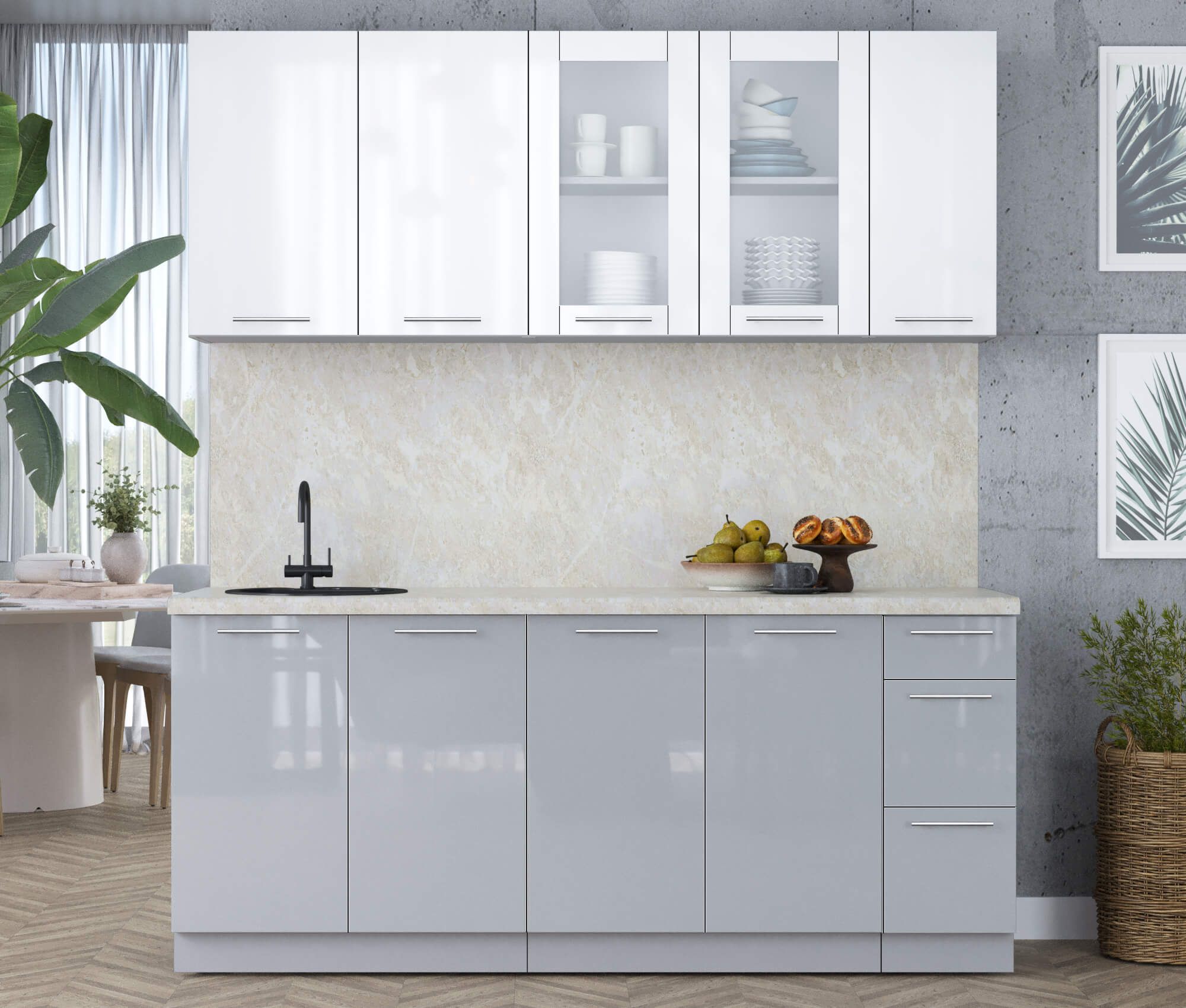 ГОТОВАЯ КУХНЯ ПЛАСТИК 1,9Б (БЕЛЫЙ ГЛЯНЕЦ/ ТУМАННЫЙ ГЛЯНЕЦ) - Yuta.by
