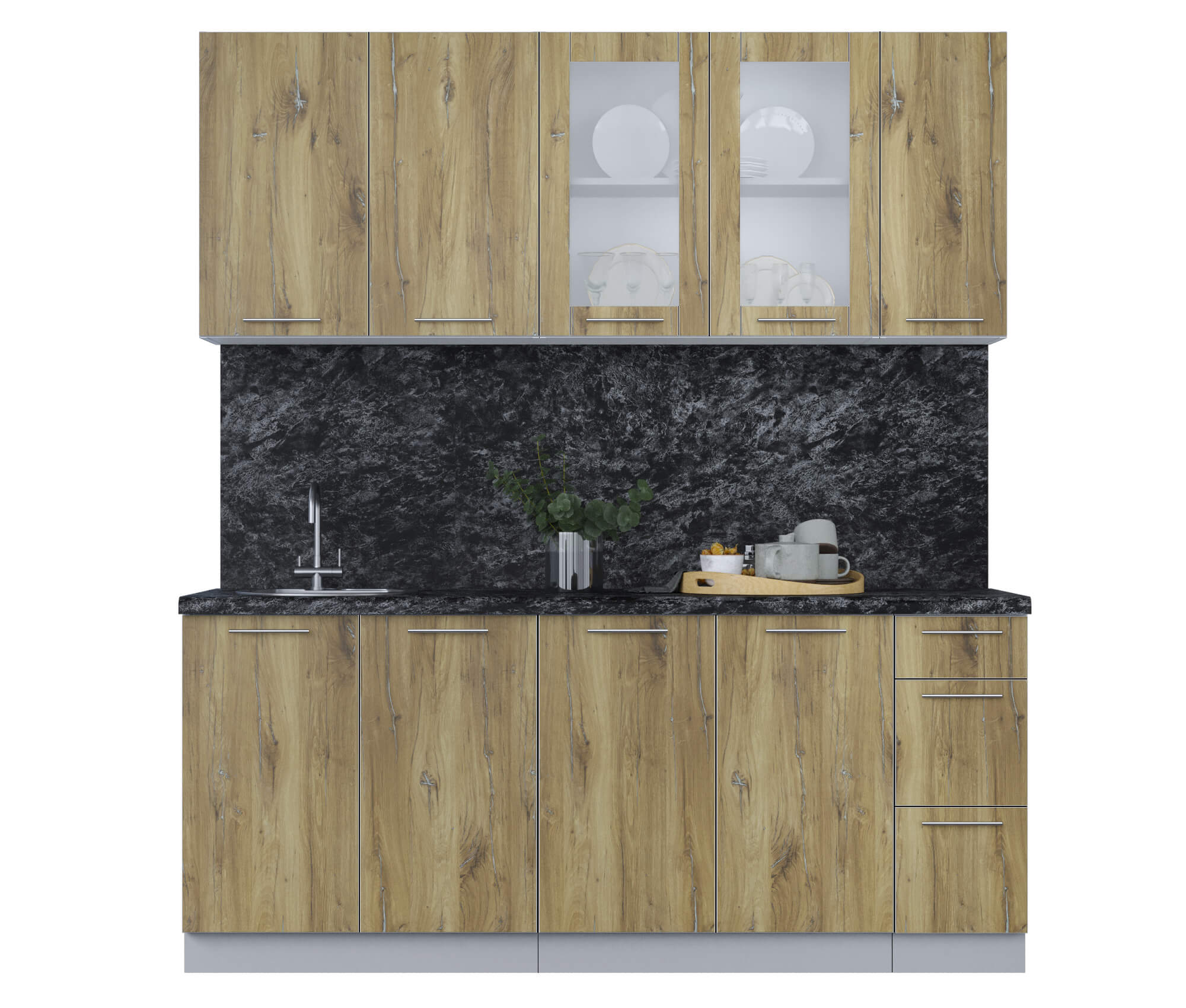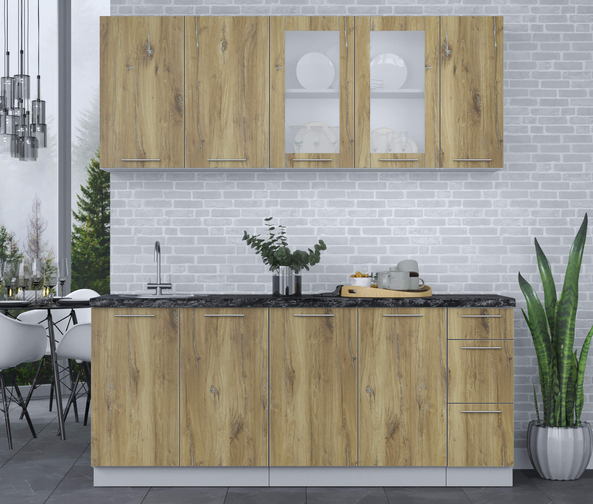 ГОТОВАЯ КУХНЯ ПЛАСТИК 1,9Б (ДУБ ЭПОКСИД/ ДУБ ЭПОКСИД) - Yuta.by