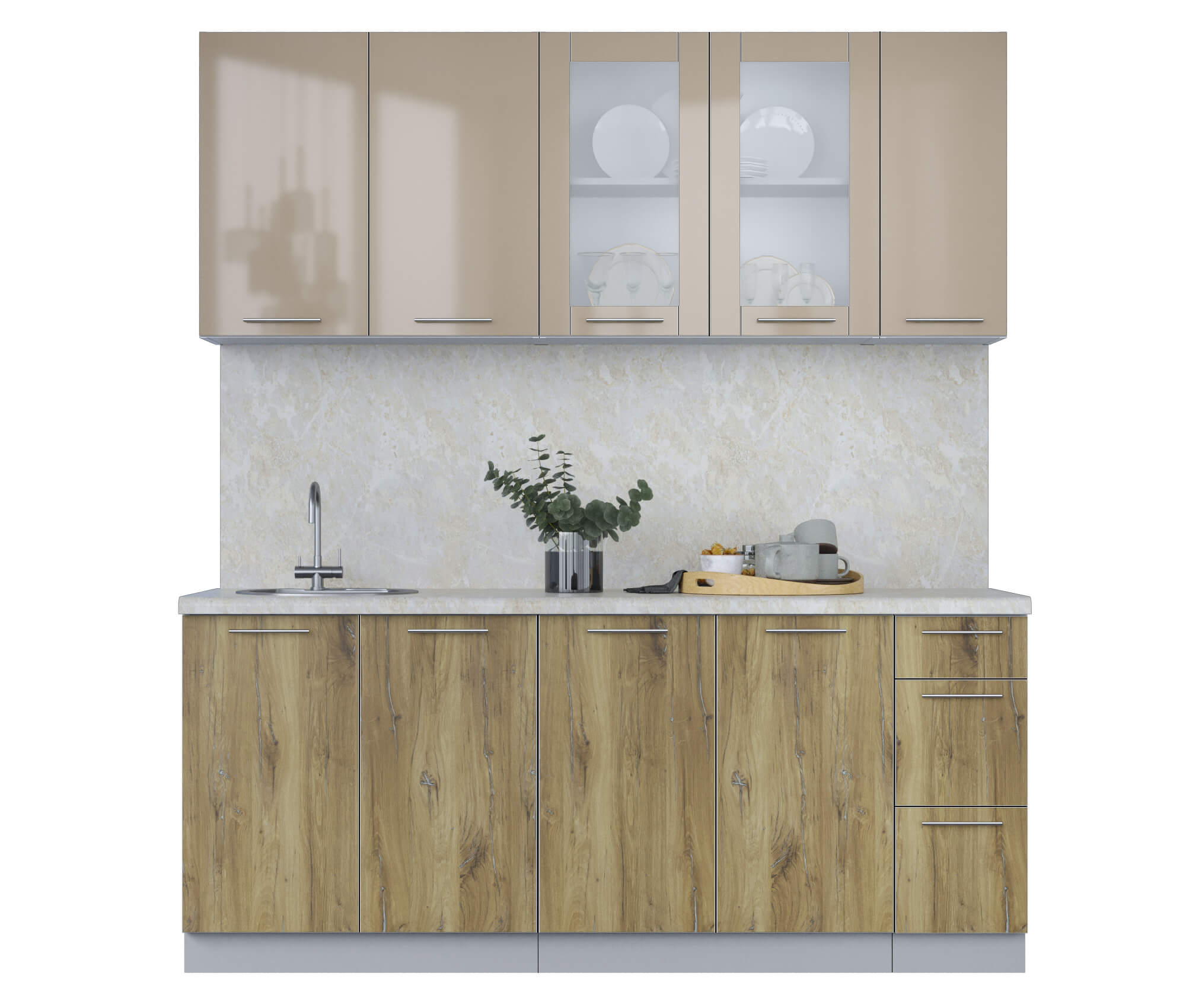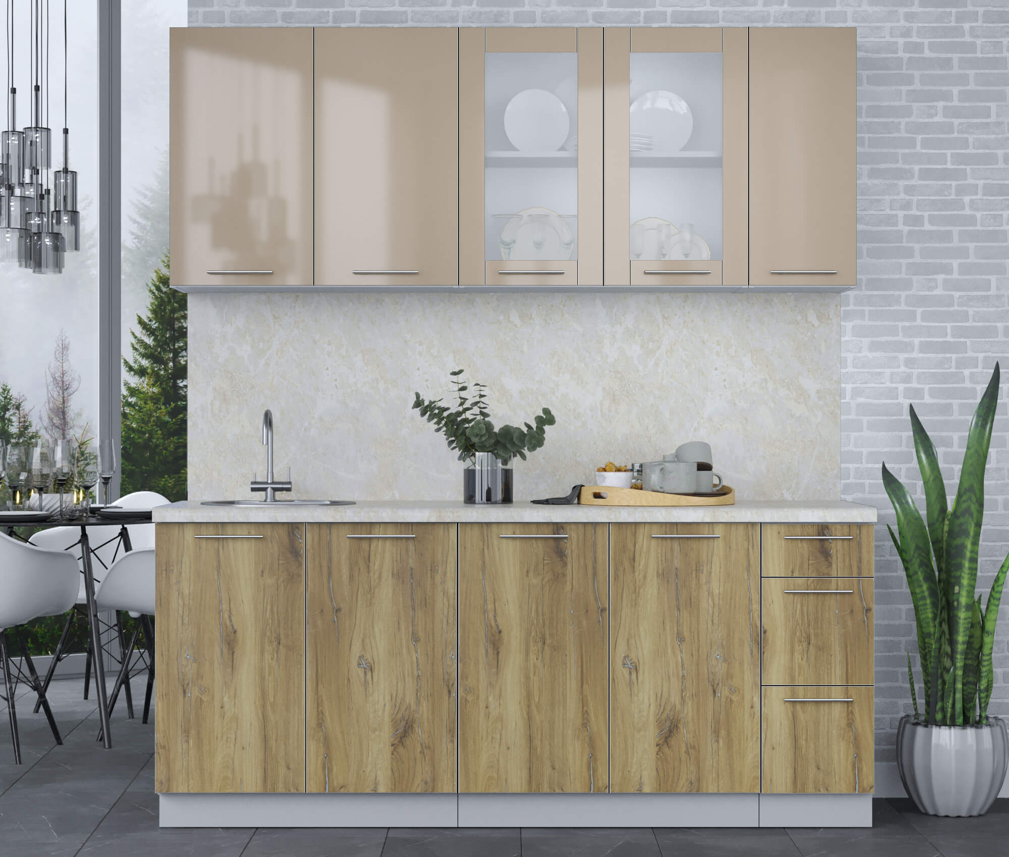 ГОТОВАЯ КУХНЯ ПЛАСТИК 1,9Б (КАПУЧИНО ГЛЯНЕЦ/ ДУБ ЭПОКСИД) - Yuta.by
