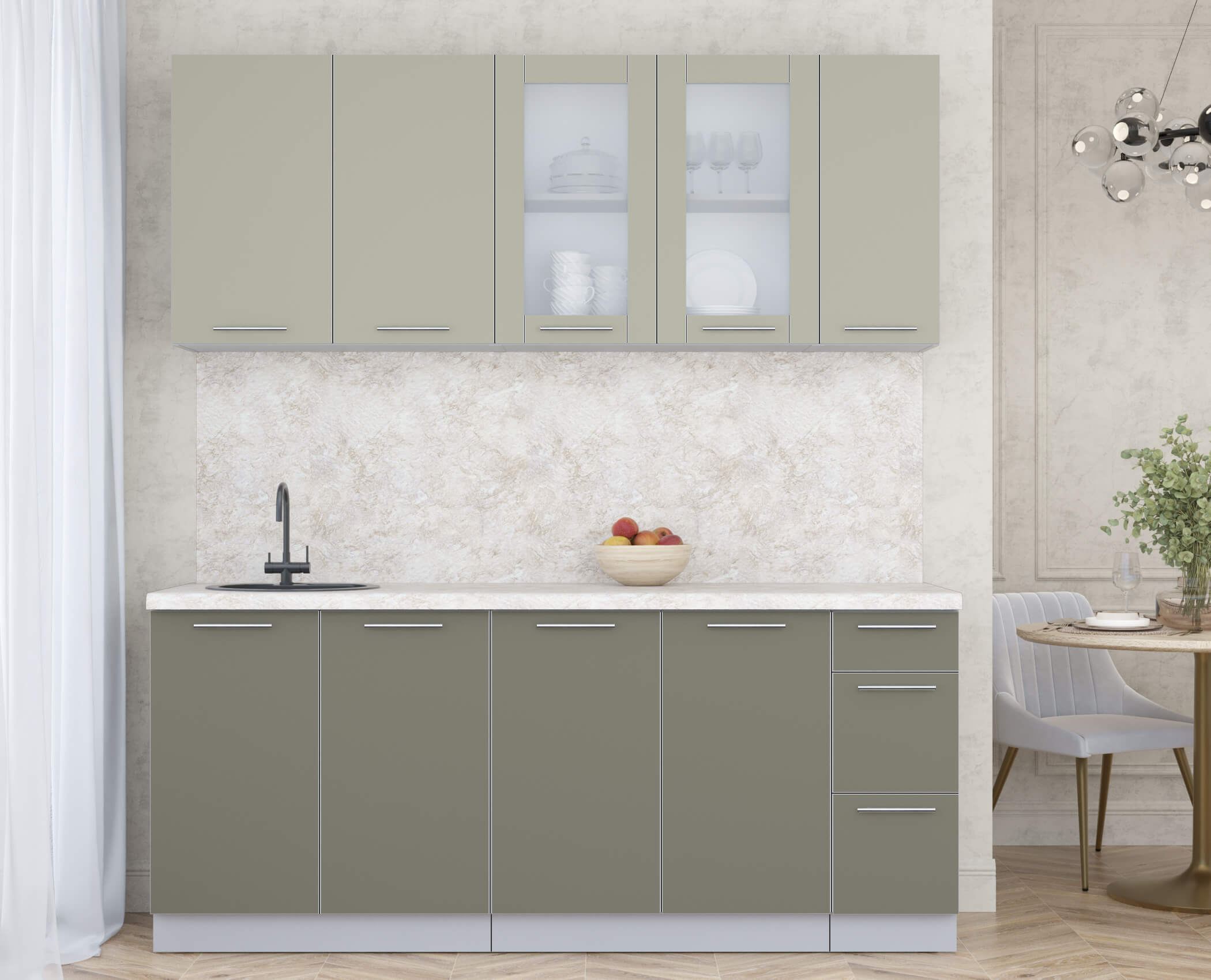 ГОТОВАЯ КУХНЯ ПЛАСТИК 1,9Б (ЛАТТЕ/ КВАРЦЕВЫЙ) - Yuta.by