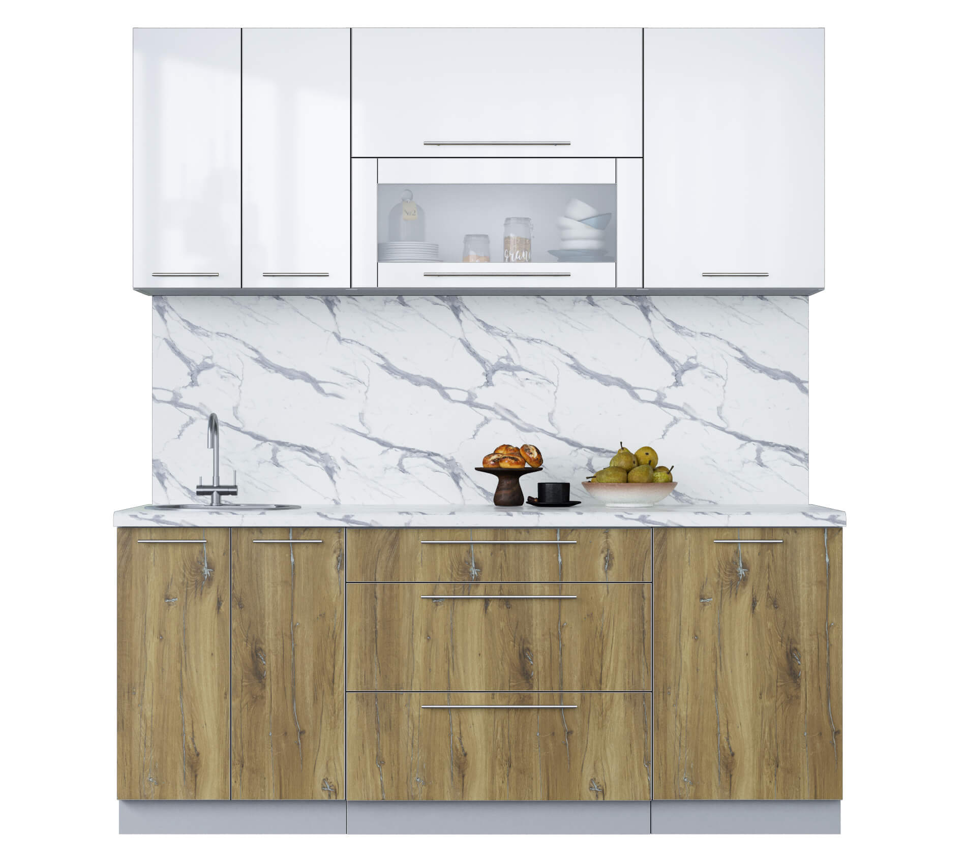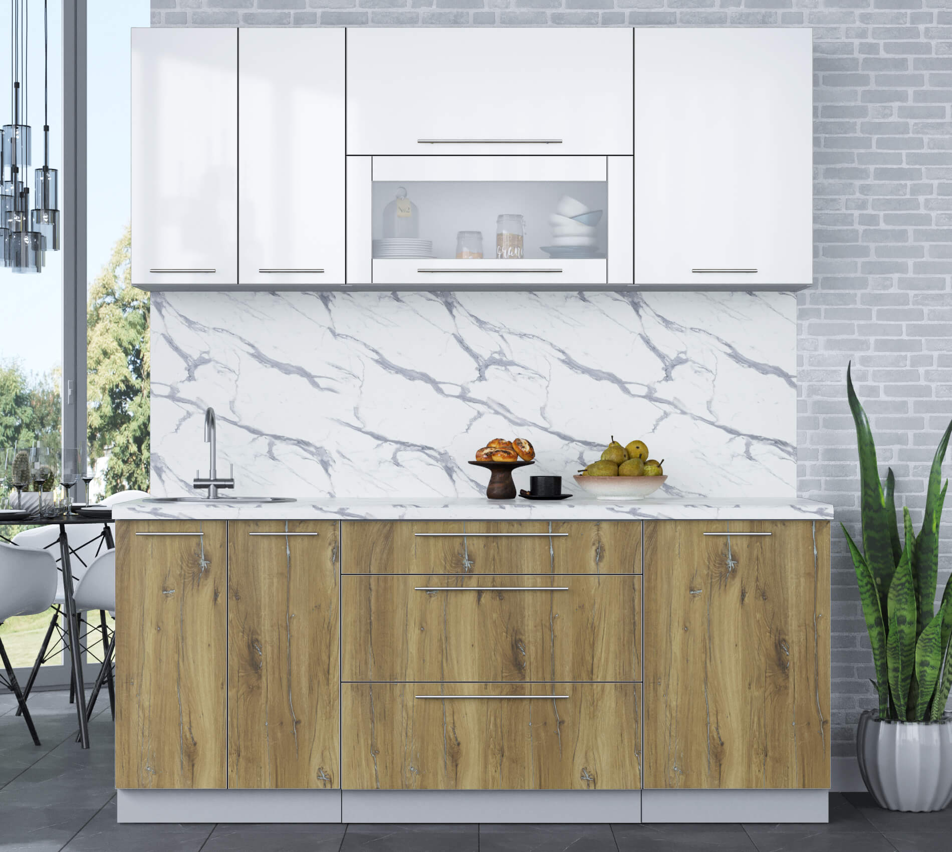 ГОТОВАЯ КУХНЯ ПЛАСТИК 1,9В (БЕЛЫЙ ГЛЯНЕЦ/ ДУБ ЭПОКСИД) - Yuta.by
