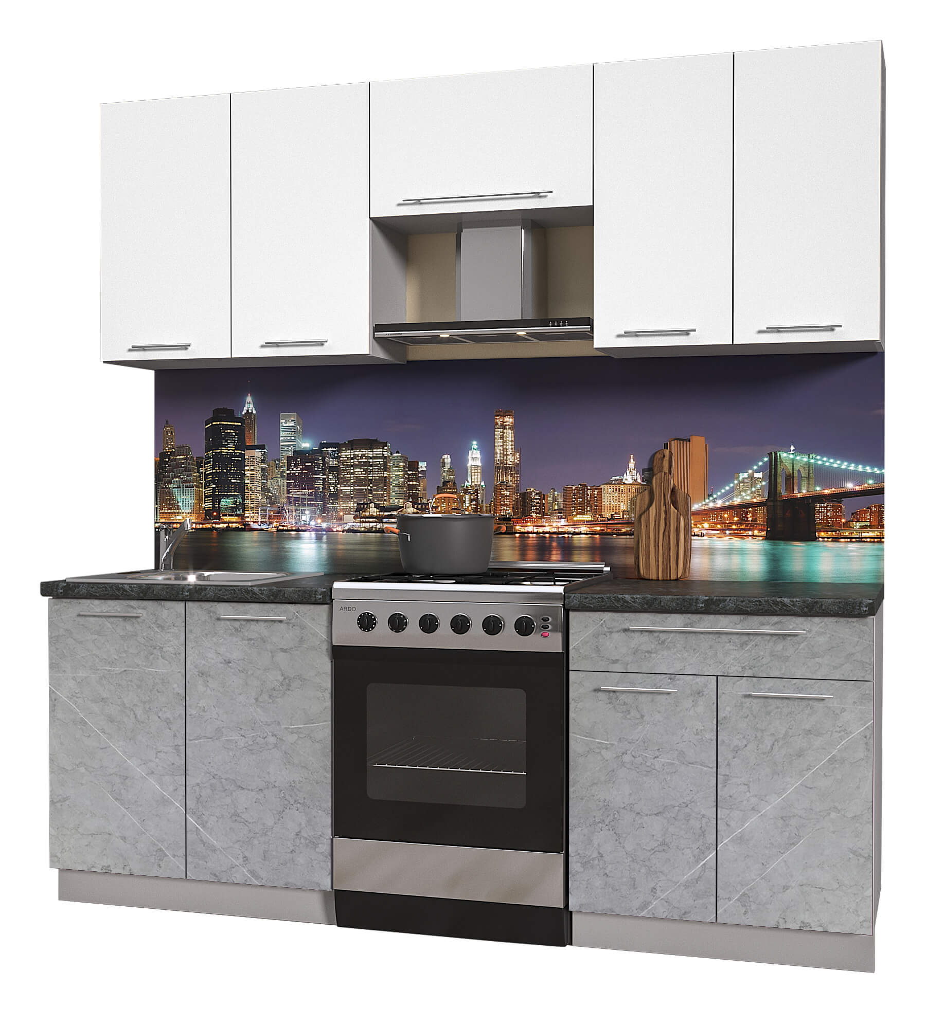 ГОТОВАЯ КУХНЯ ПЛАСТИК 2,1А (БЕЛЫЙ ГЛЯНЕЦ/ МРАМОР) - Yuta.by