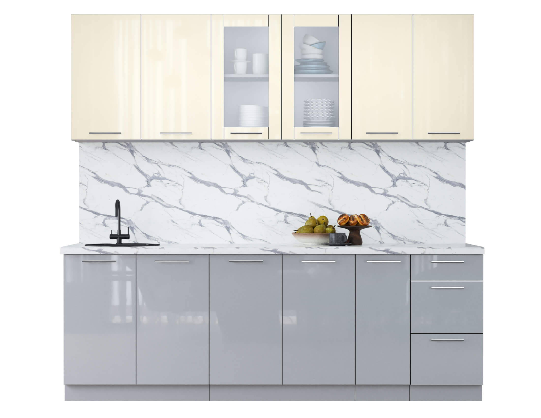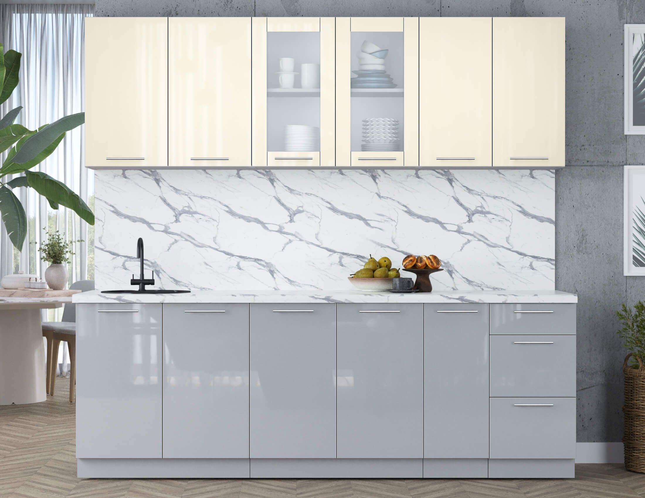 ГОТОВАЯ КУХНЯ ПЛАСТИК 2,3Б (ВАНИЛЬ ГЛЯНЕЦ/ ТУМАННЫЙ ГЛЯНЕЦ) - Yuta.by