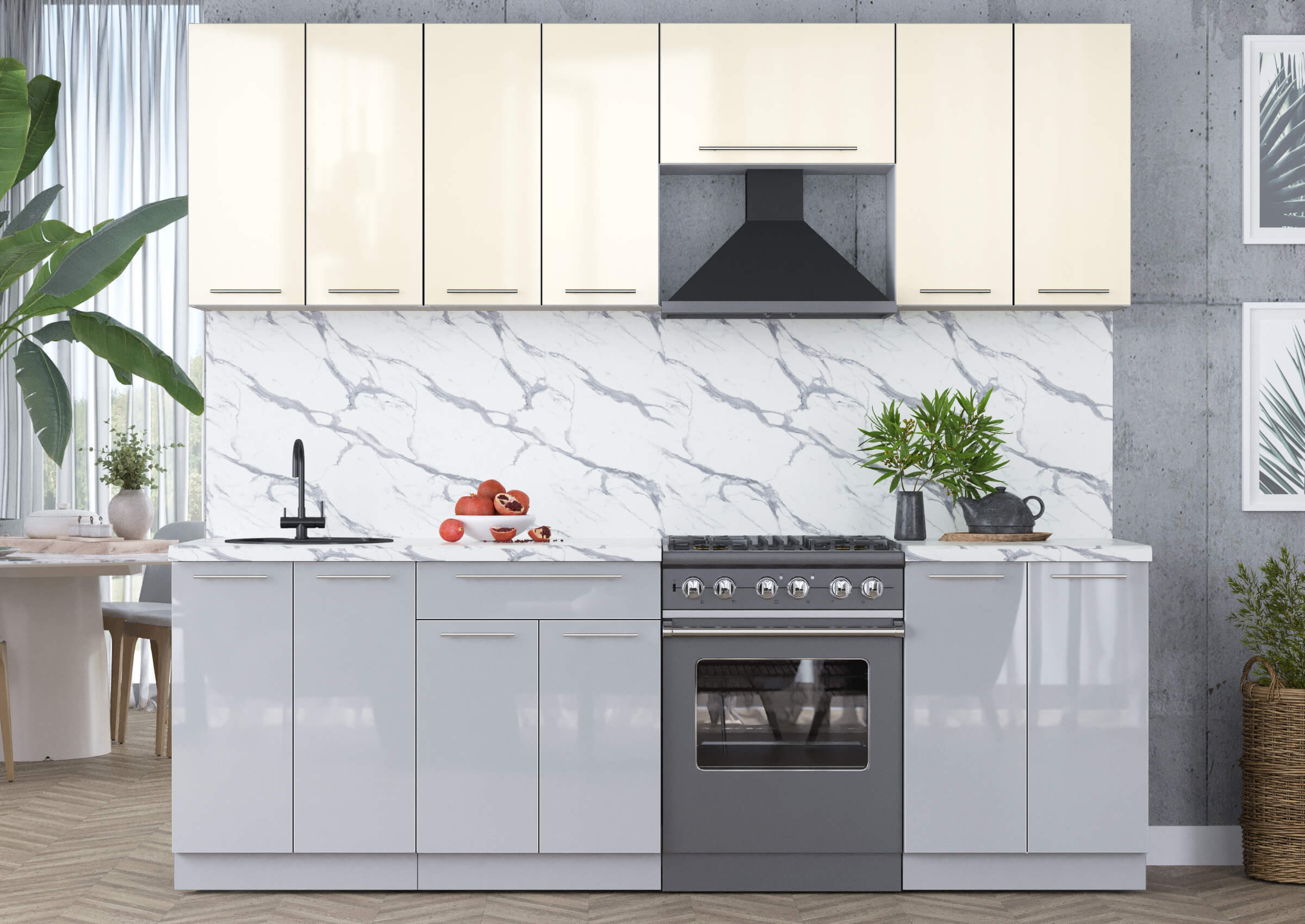 ГОТОВАЯ КУХНЯ ПЛАСТИК 2,4А (ВАНИЛЬ ГЛЯНЕЦ/ ТУМАННЫЙ ГЛЯНЕЦ) - Yuta.by
