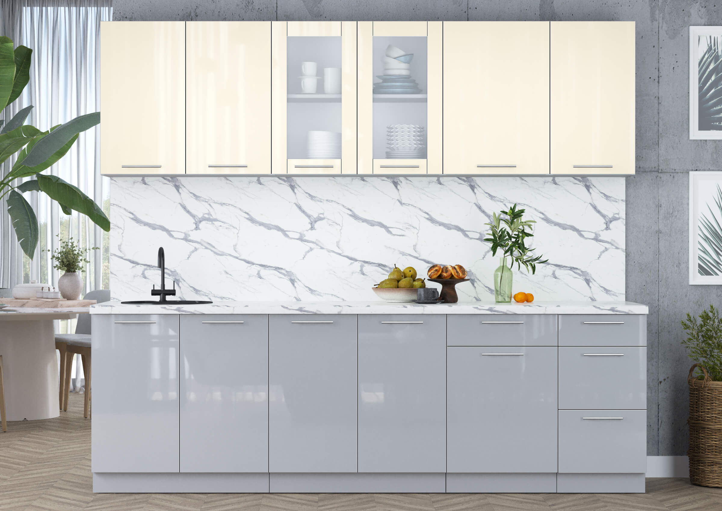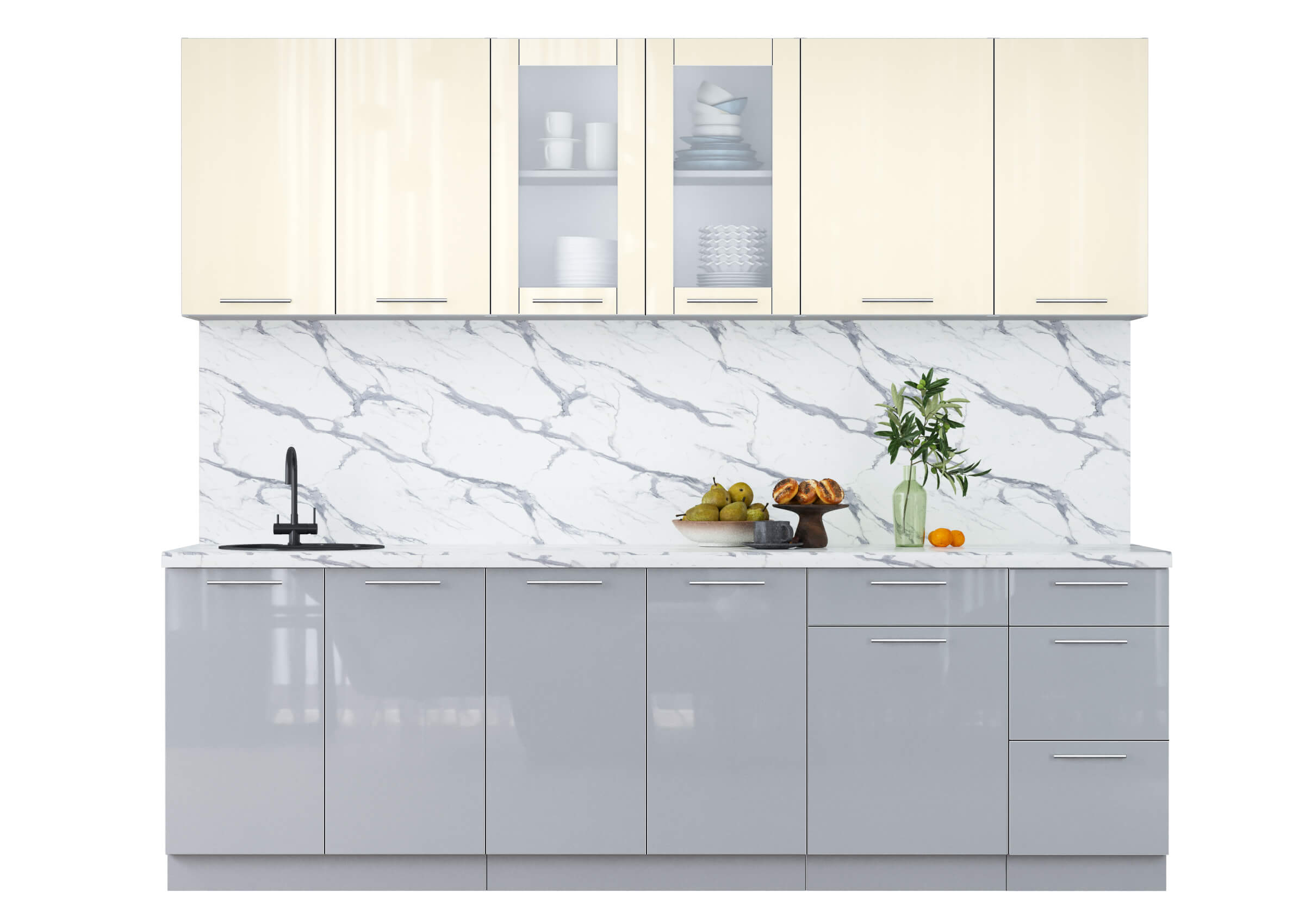 ГОТОВАЯ КУХНЯ ПЛАСТИК 2,5Б (ВАНИЛЬ ГЛЯНЕЦ/ ТУМАННЫЙ ГЛЯНЕЦ) - Yuta.by