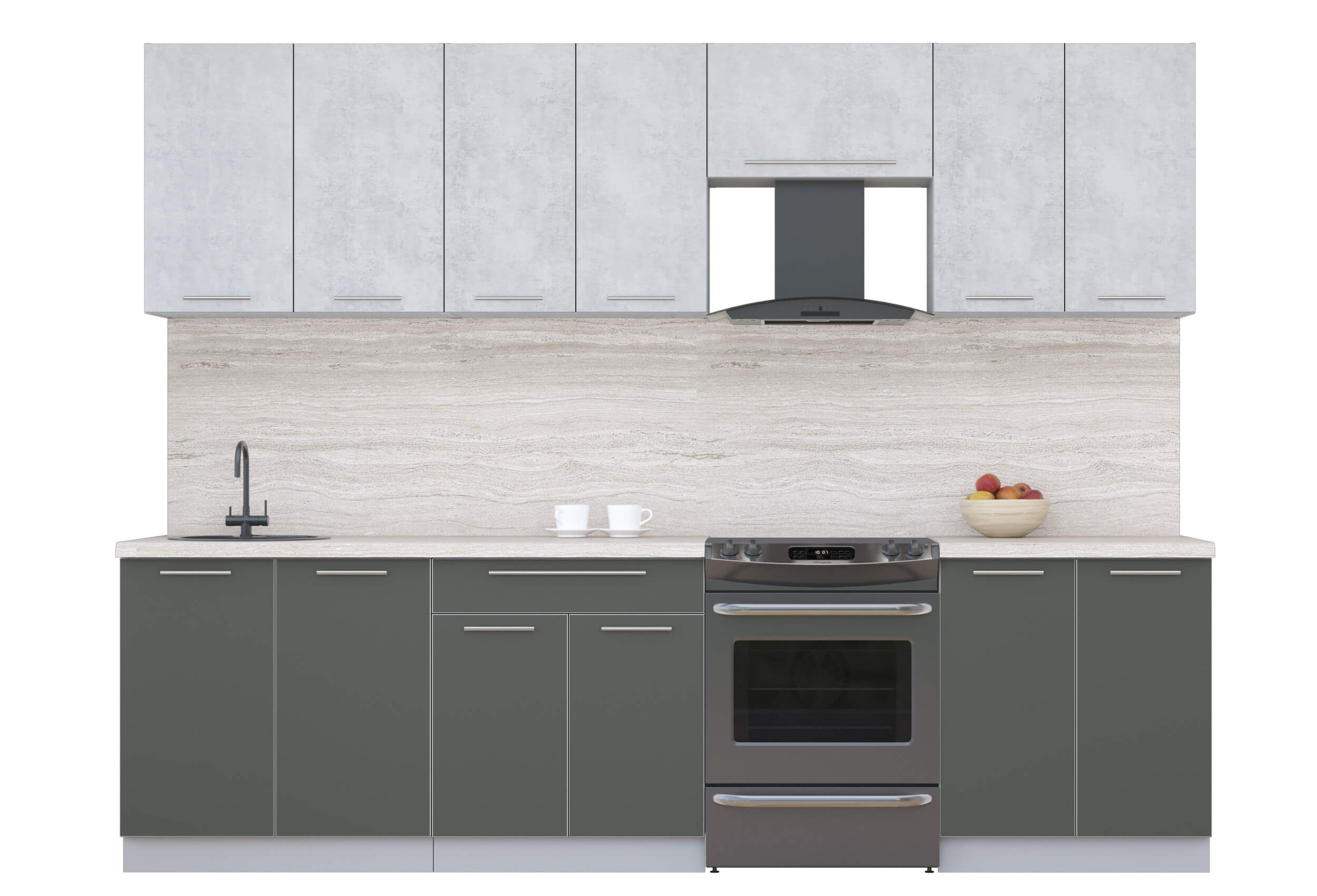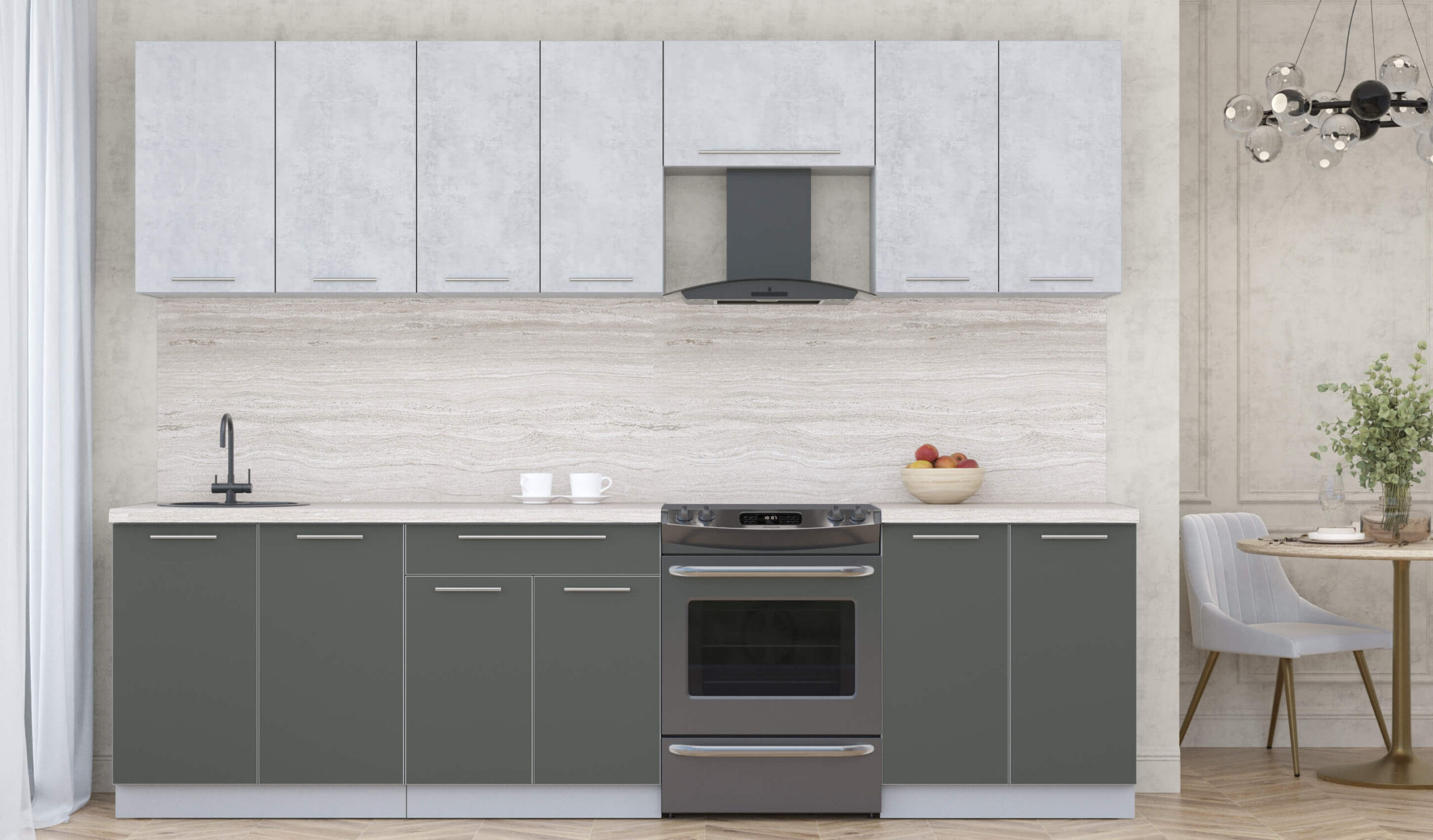 ГОТОВАЯ КУХНЯ ПЛАСТИК 2,8А (ОКСИД СВЕТЛЫЙ/ ШТОРМ) - Yuta.by