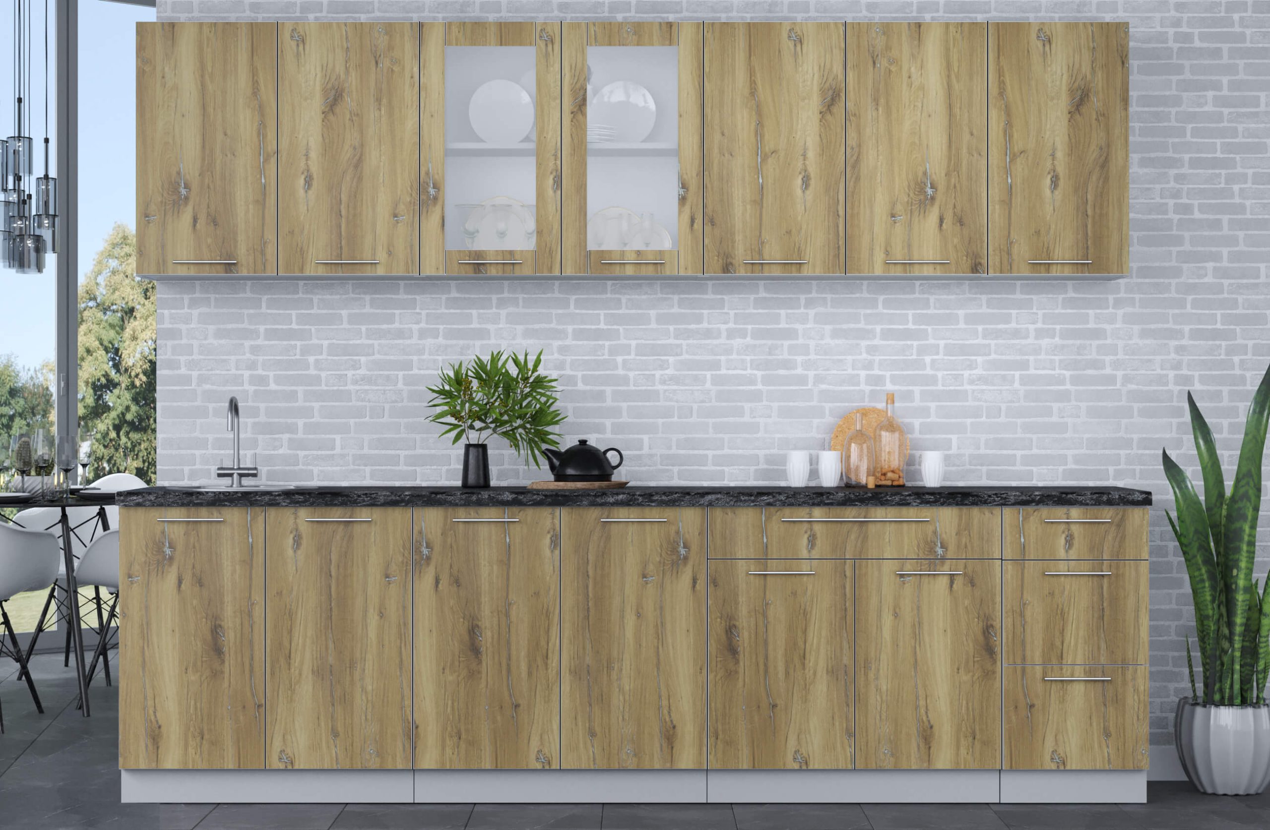 ГОТОВАЯ КУХНЯ ПЛАСТИК 2,8Б (ДУБ ЭПОКСИД/ ДУБ ЭПОКСИД) - Yuta.by