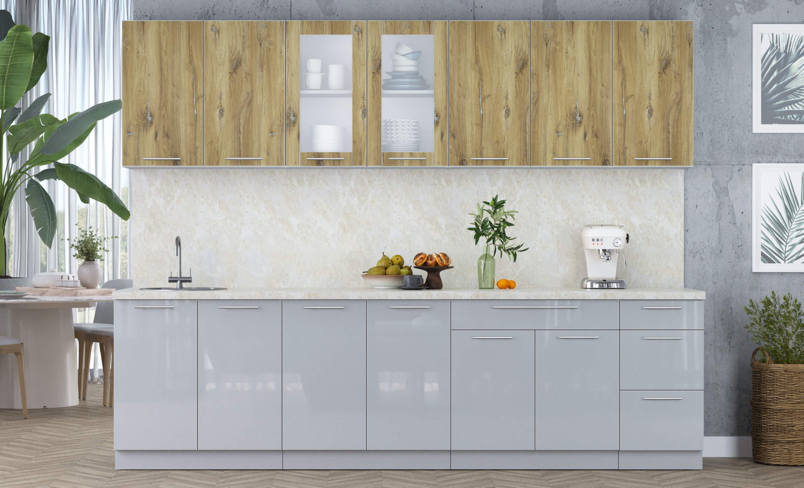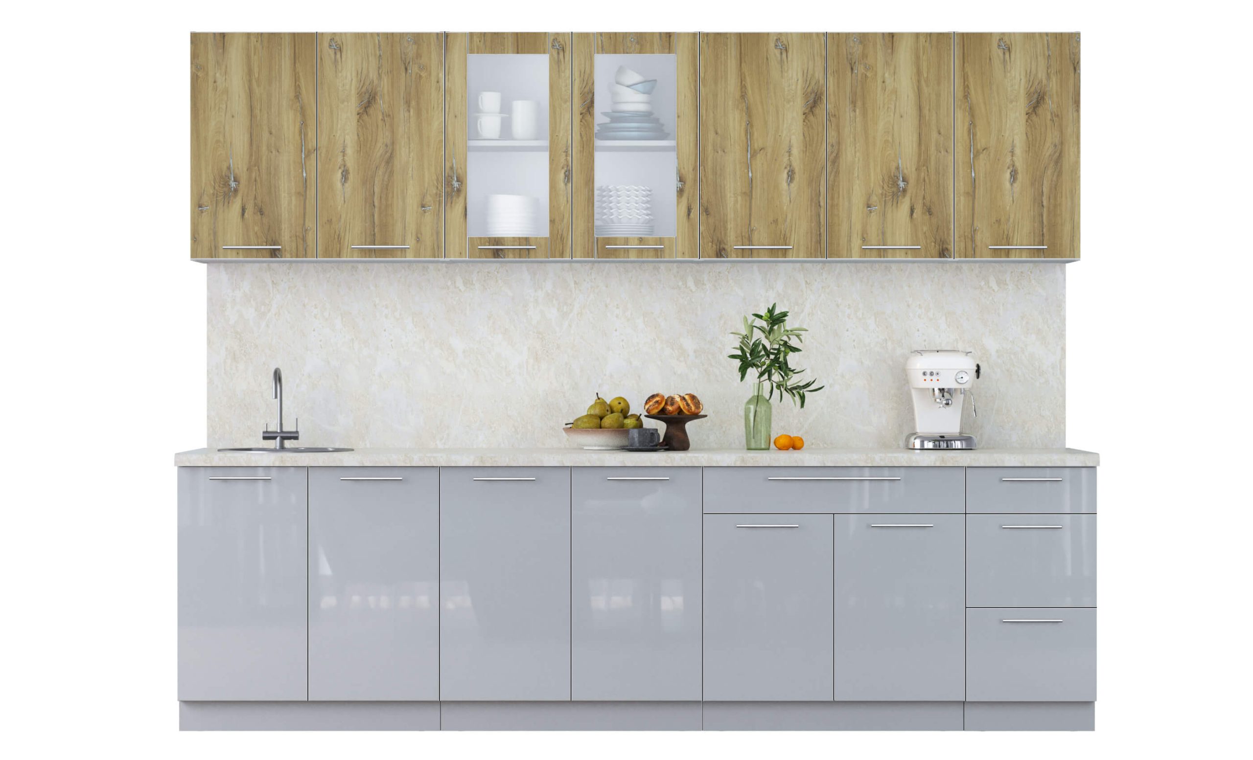 ГОТОВАЯ КУХНЯ ПЛАСТИК 2,8Б (ДУБ ЭПОКСИД/ ТУМАННЫЙ ГЛЯНЕЦ) - Yuta.by