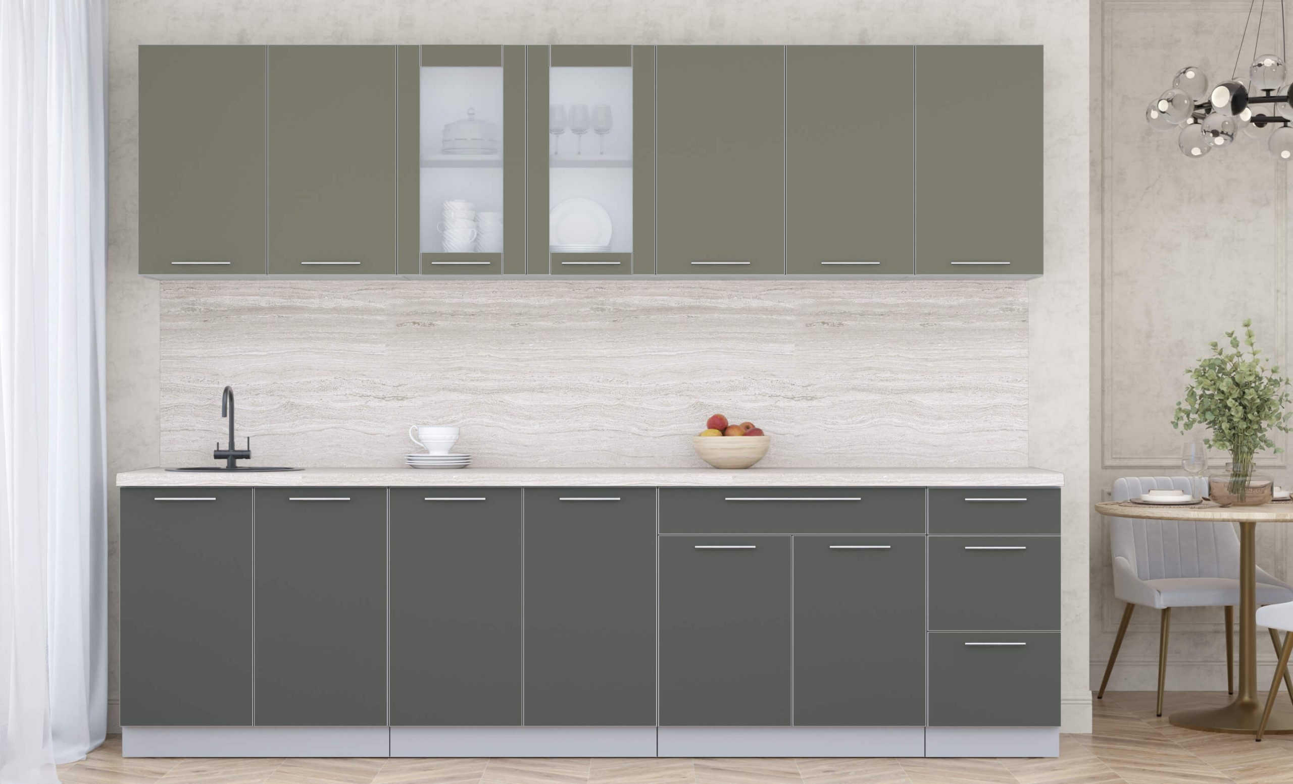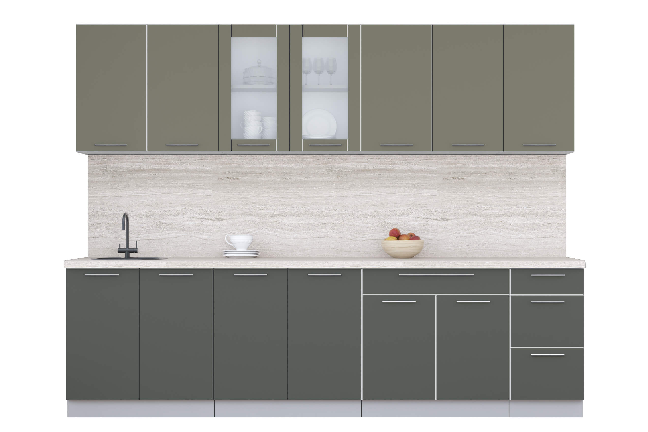 ГОТОВАЯ КУХНЯ ПЛАСТИК 2,8Б (КВАРЦЕВЫЙ/ ШТОРМ) - Yuta.by
