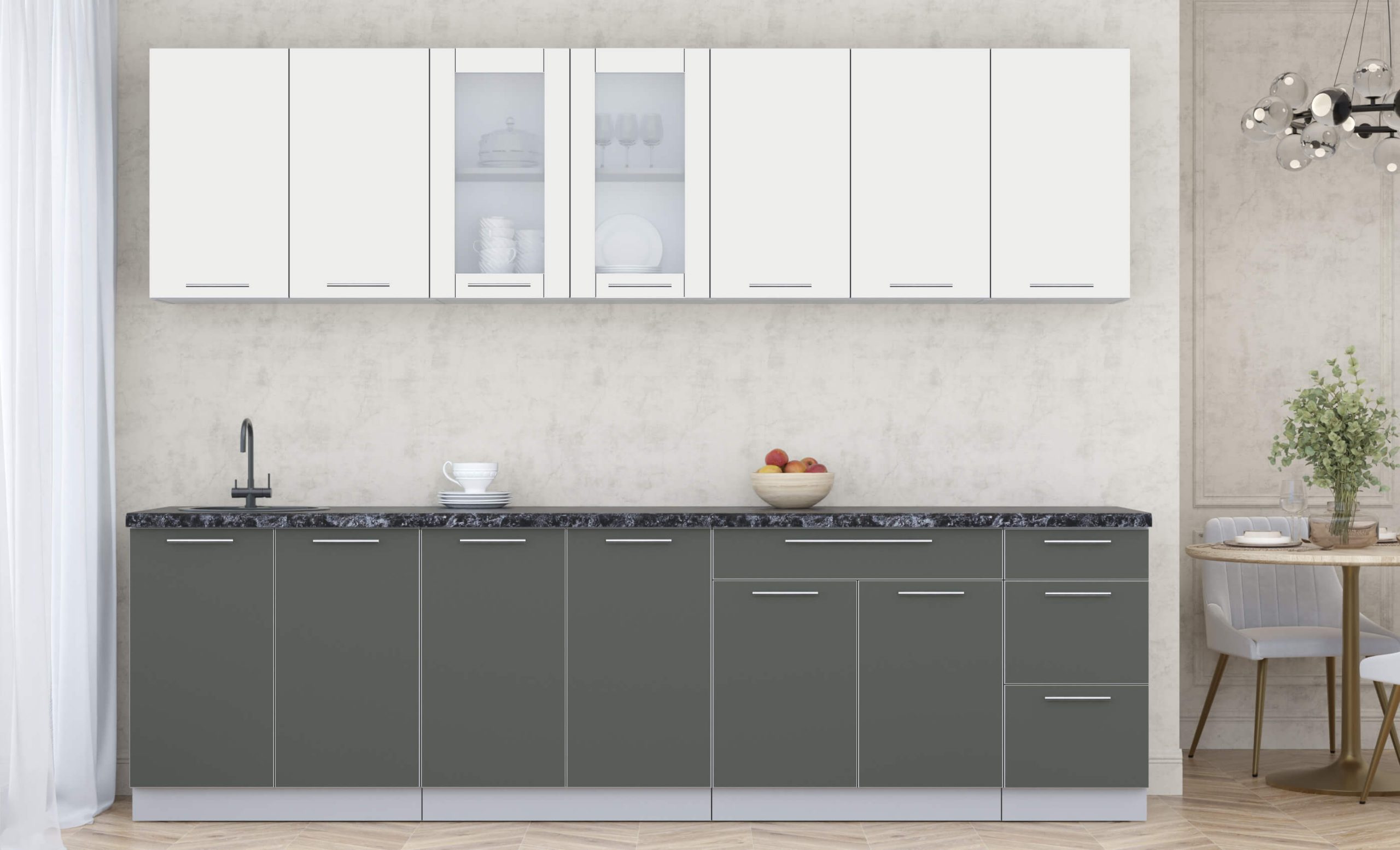 ГОТОВАЯ КУХНЯ ПЛАСТИК 2,8Б (ЗЕФИРНЫЙ/ ШТОРМ) - Yuta.by