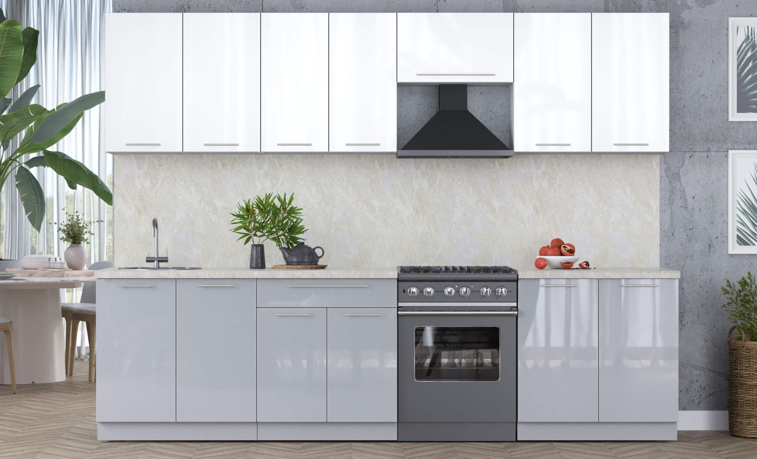 ГОТОВАЯ КУХНЯ ПЛАСТИК 2,9А (БЕЛЫЙ ГЛЯНЕЦ/ ТУМАННЫЙ ГЛЯНЕЦ) - Yuta.by