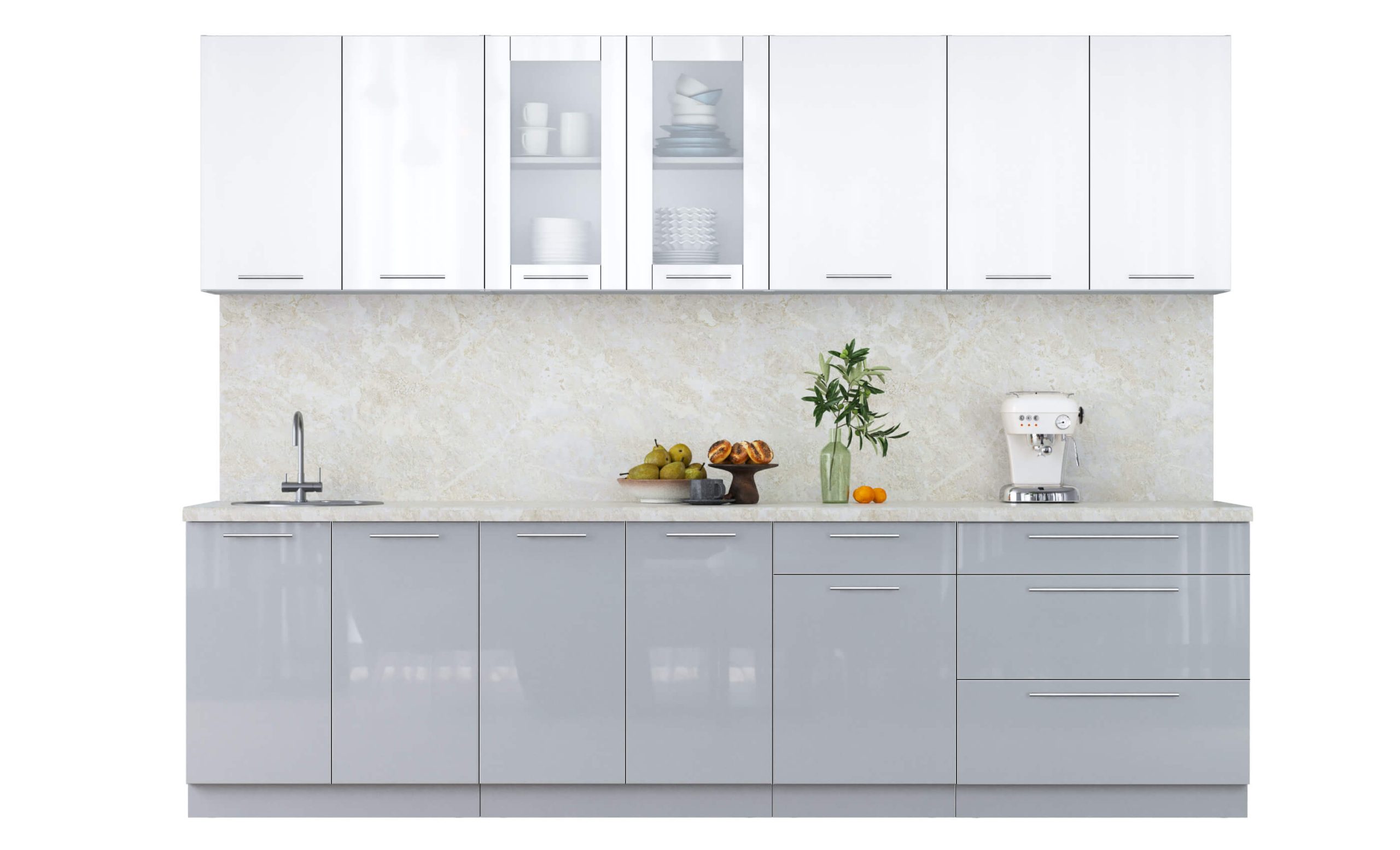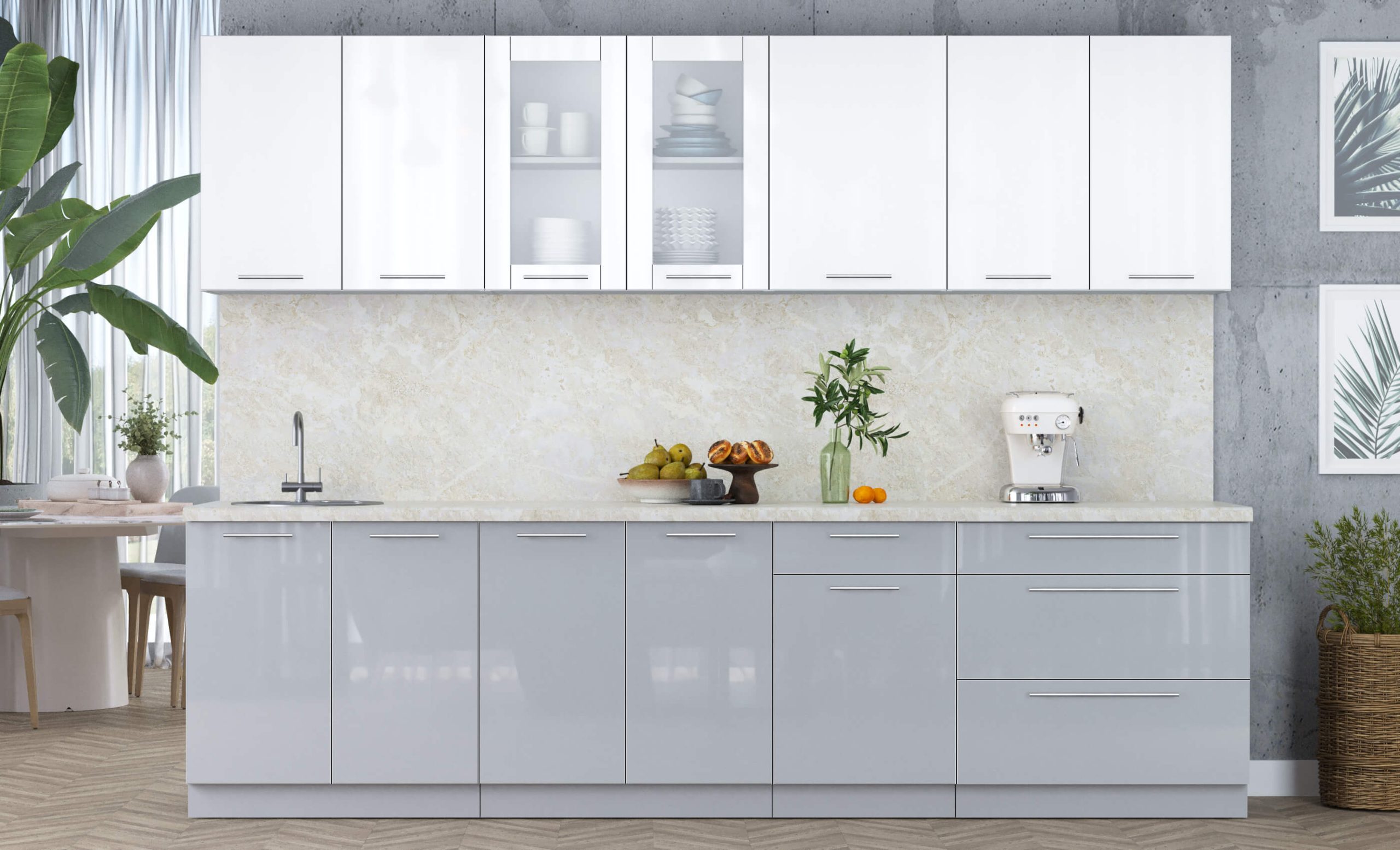 ГОТОВАЯ КУХНЯ ПЛАСТИК 2,9Б (БЕЛЫЙ ГЛЯНЕЦ/ ТУМАННЫЙ ГЛЯНЕЦ) - Yuta.by
