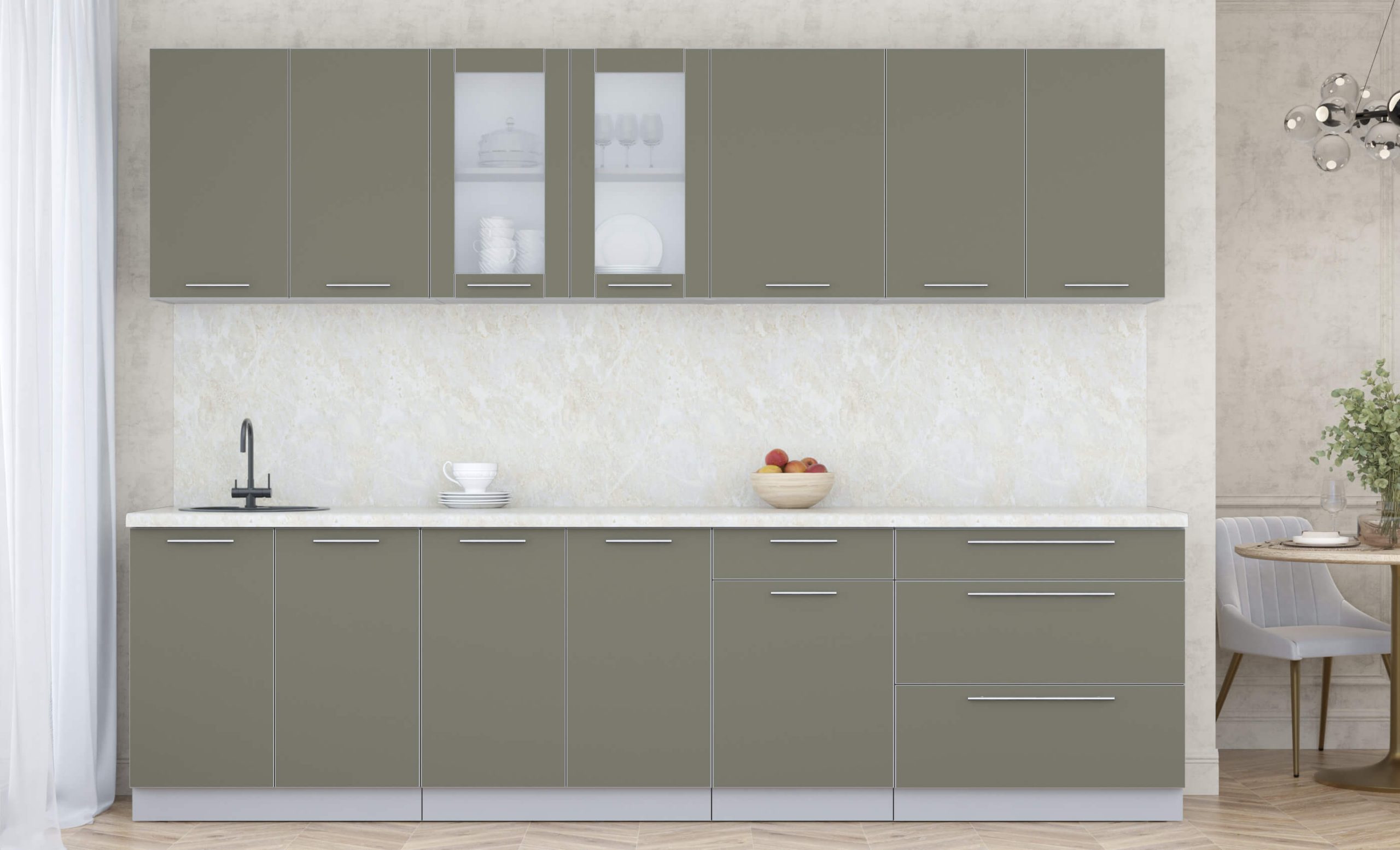 ГОТОВАЯ КУХНЯ ПЛАСТИК 2,9Б (КВАРЦЕВЫЙ/ КВАРЦЕВЫЙ)
