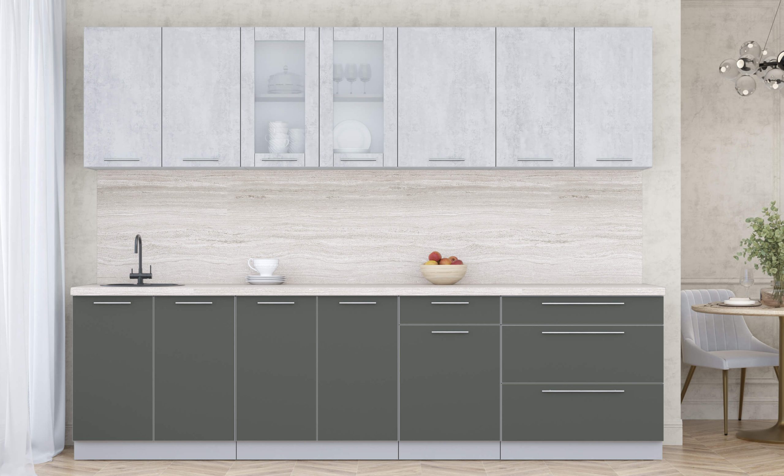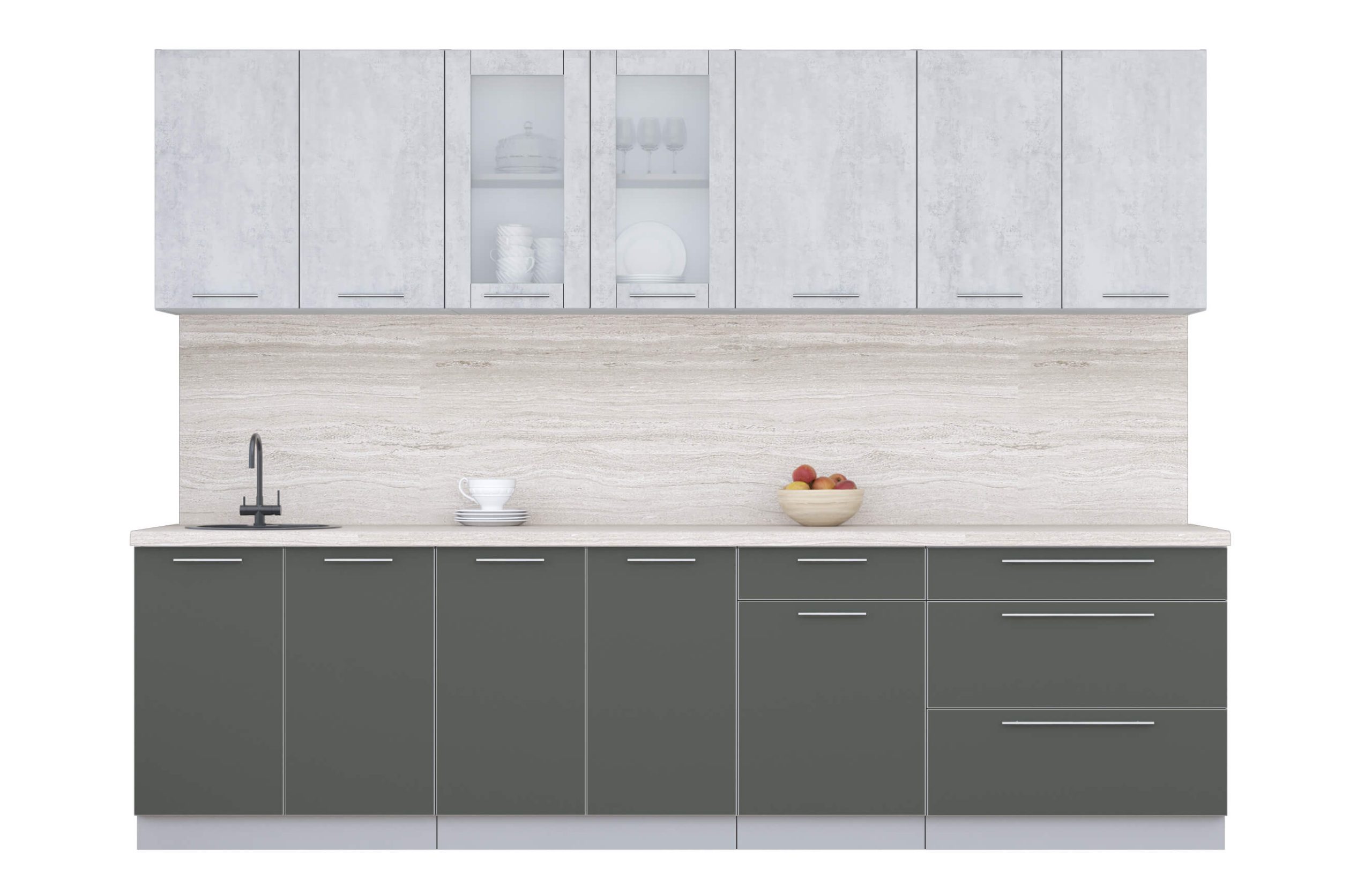 ГОТОВАЯ КУХНЯ ПЛАСТИК 2,9Б (ОКСИД СВЕТЛЫЙ/ ШТОРМ) - Yuta.by