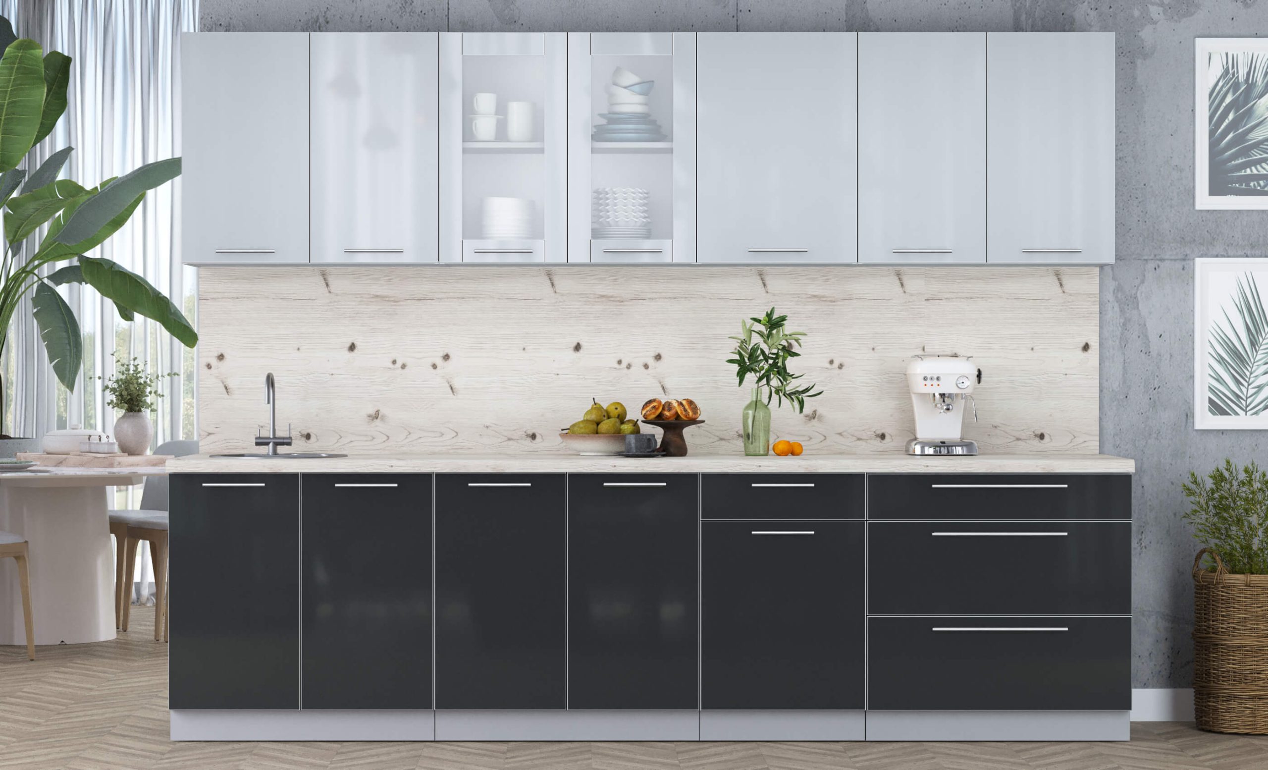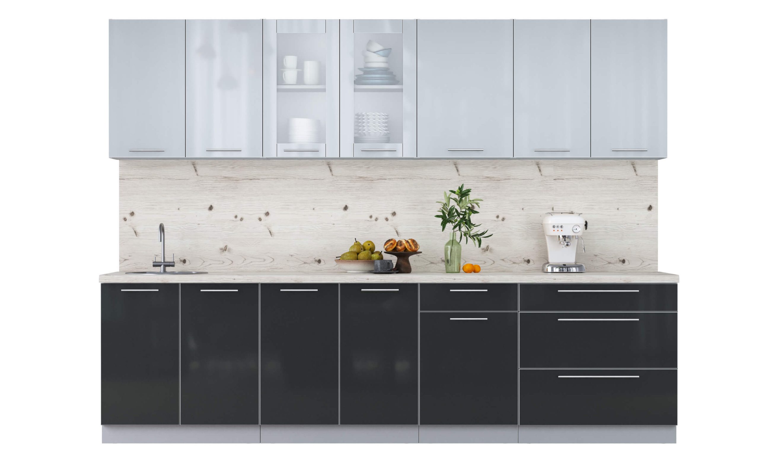 ГОТОВАЯ КУХНЯ ПЛАСТИК 2,9Б (ТУМАННЫЙ ГЛЯНЕЦ/ АНТРАЦИТ) - Yuta.by