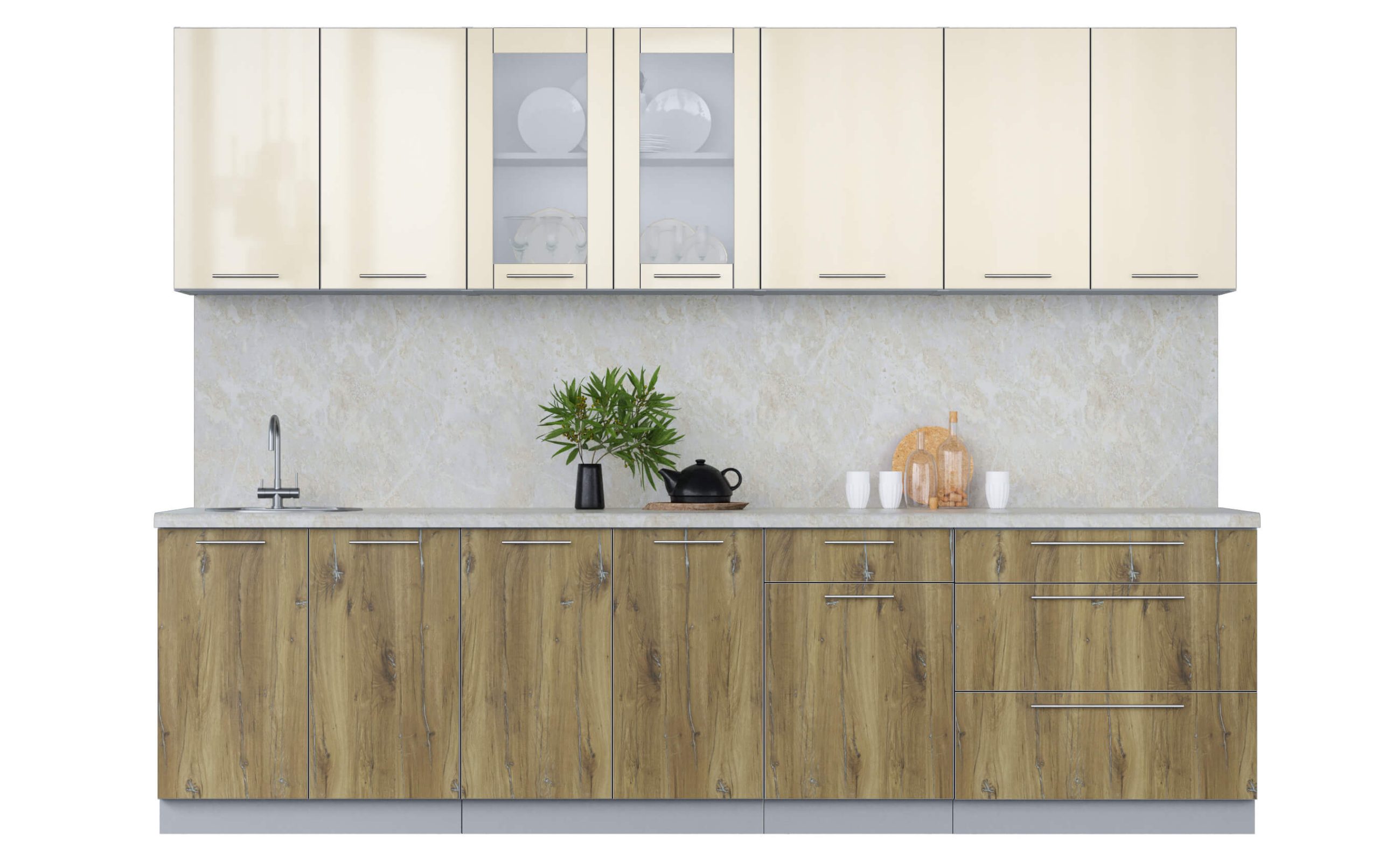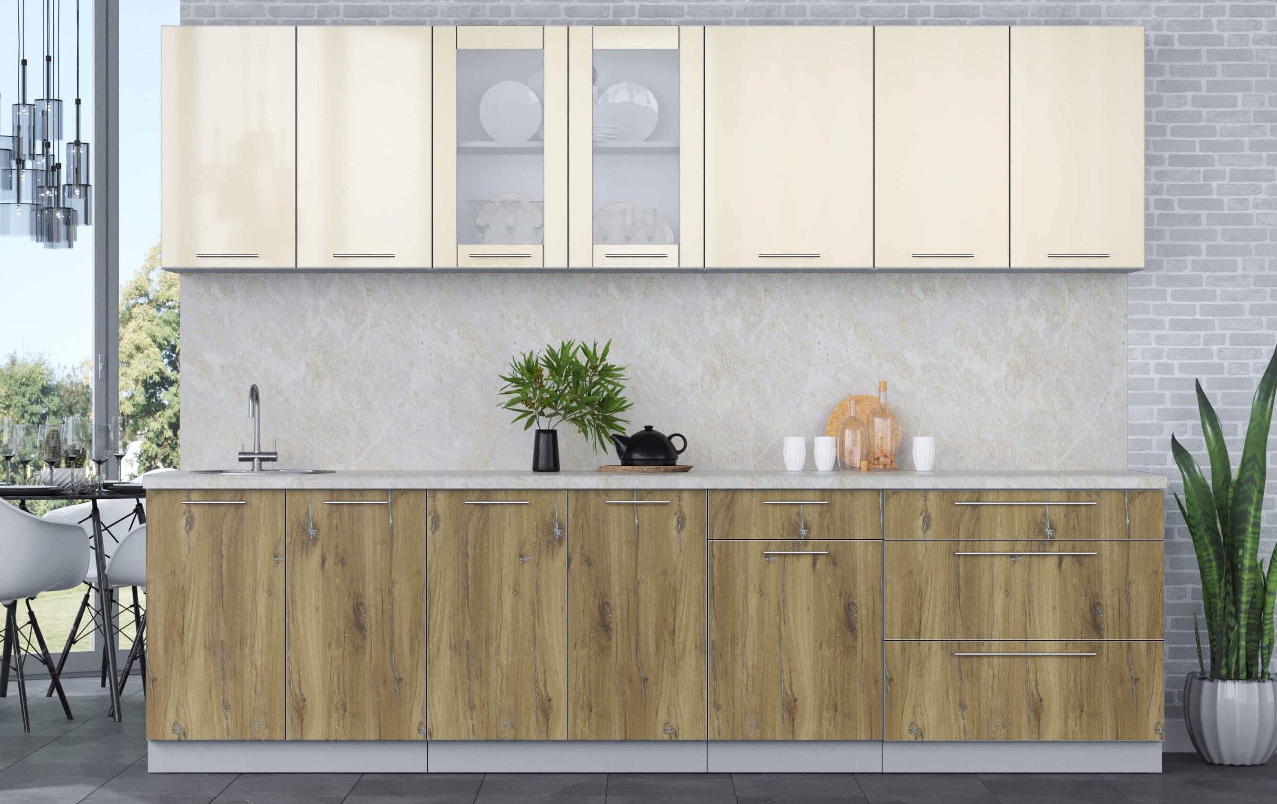 ГОТОВАЯ КУХНЯ ПЛАСТИК 2,9Б (ВАНИЛЬ ГЛЯНЕЦ/ ДУБ ЭПОКСИД) - Yuta.by
