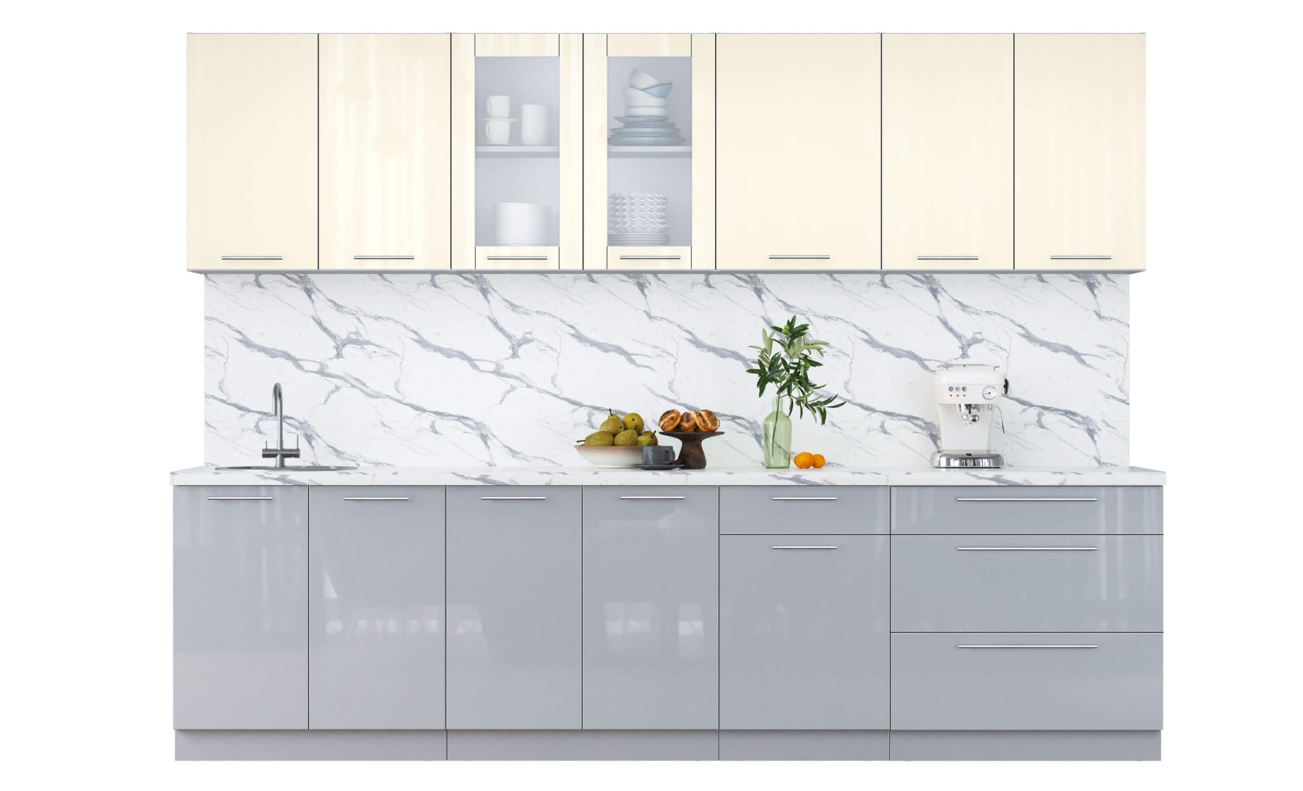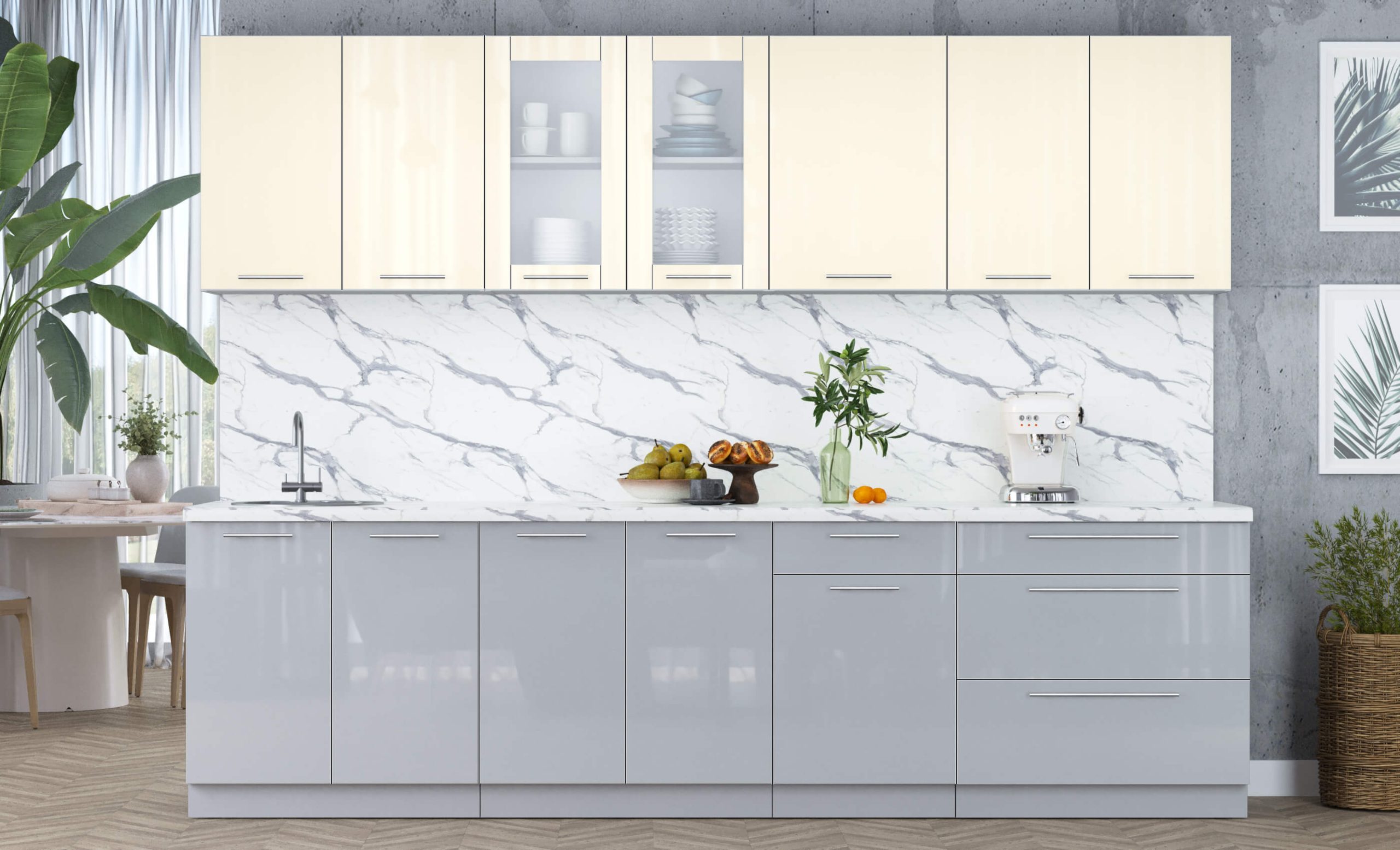 ГОТОВАЯ КУХНЯ ПЛАСТИК 2,9Б (ВАНИЛЬ ГЛЯНЕЦ/ ТУМАННЫЙ ГЛЯНЕЦ) - Yuta.by