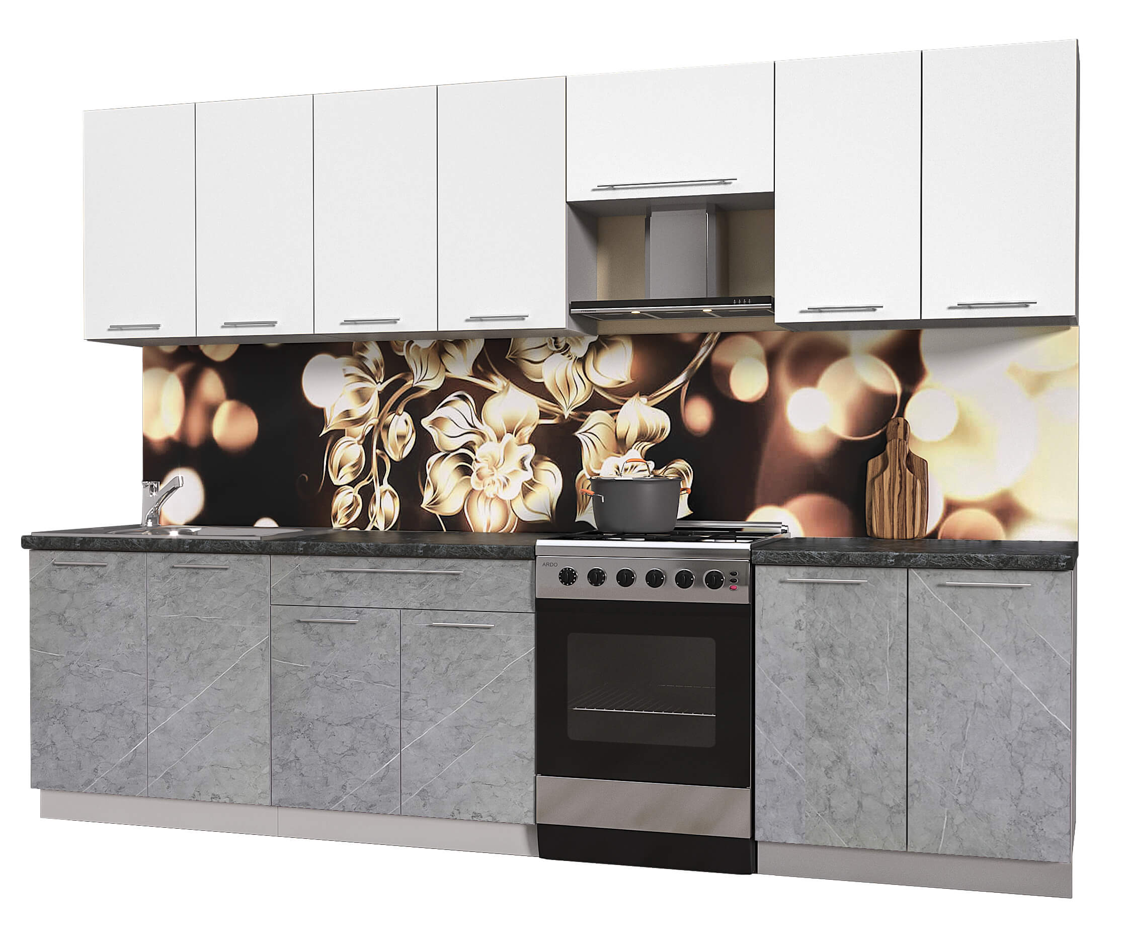 ГОТОВАЯ КУХНЯ ПЛАСТИК 3,0А (БЕЛЫЙ ГЛЯНЕЦ/ МРАМОР) - Yuta.by