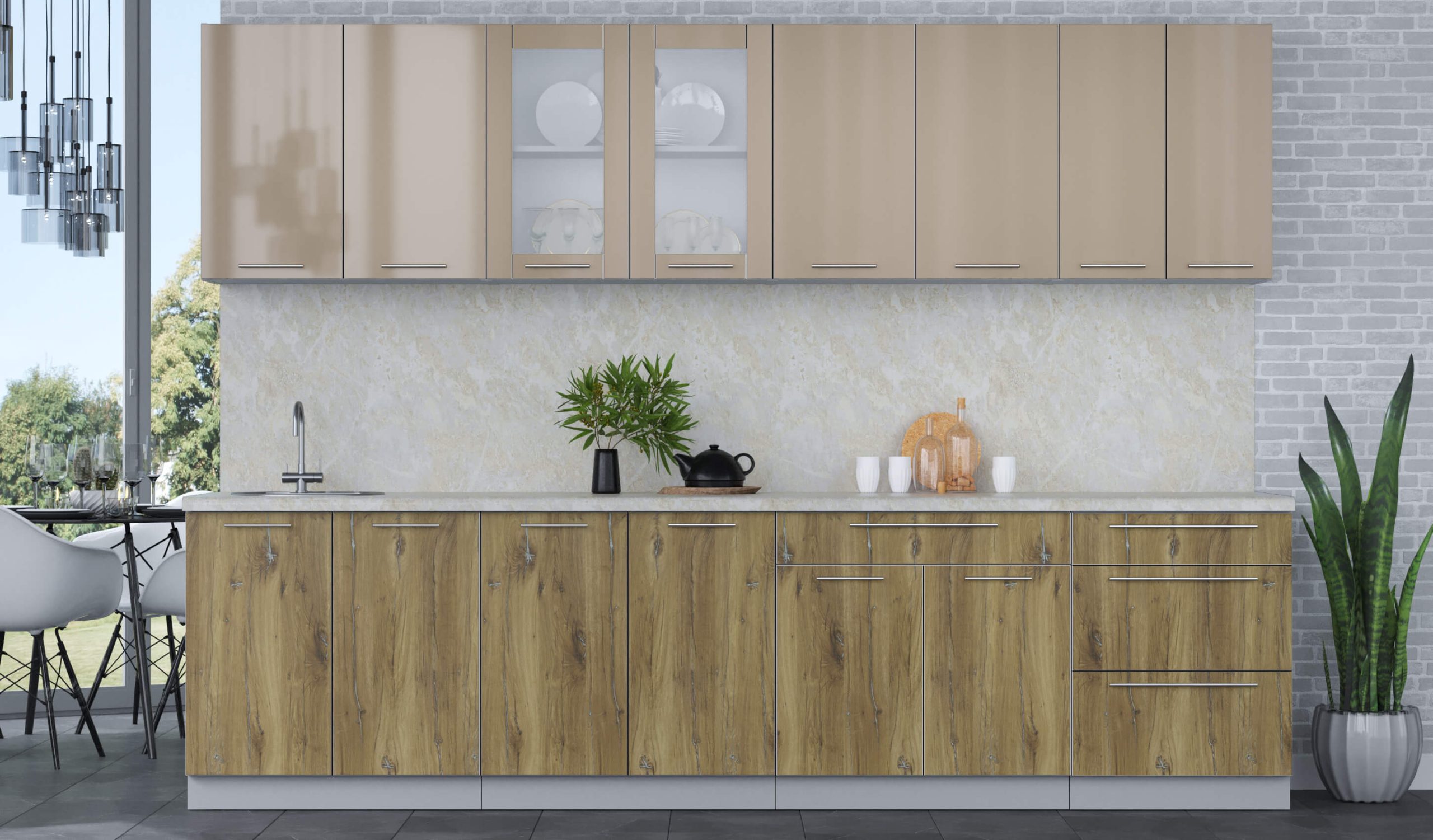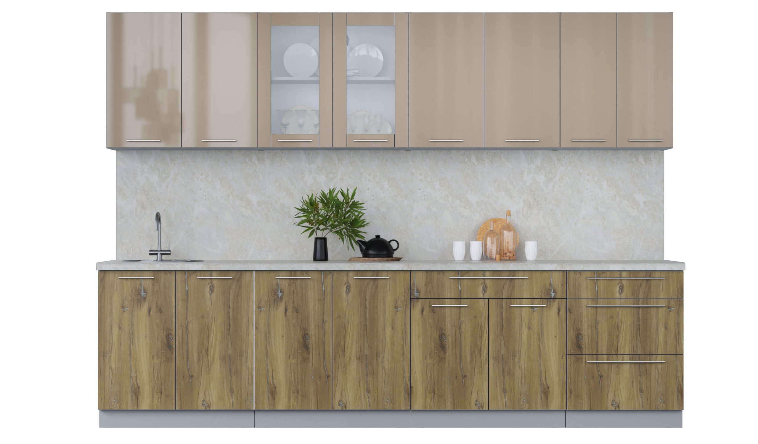 ГОТОВАЯ КУХНЯ ПЛАСТИК 3,0Б (КАПУЧИНО ГЛЯНЕЦ/ ДУБ ЭПОКСИД) - Yuta.by