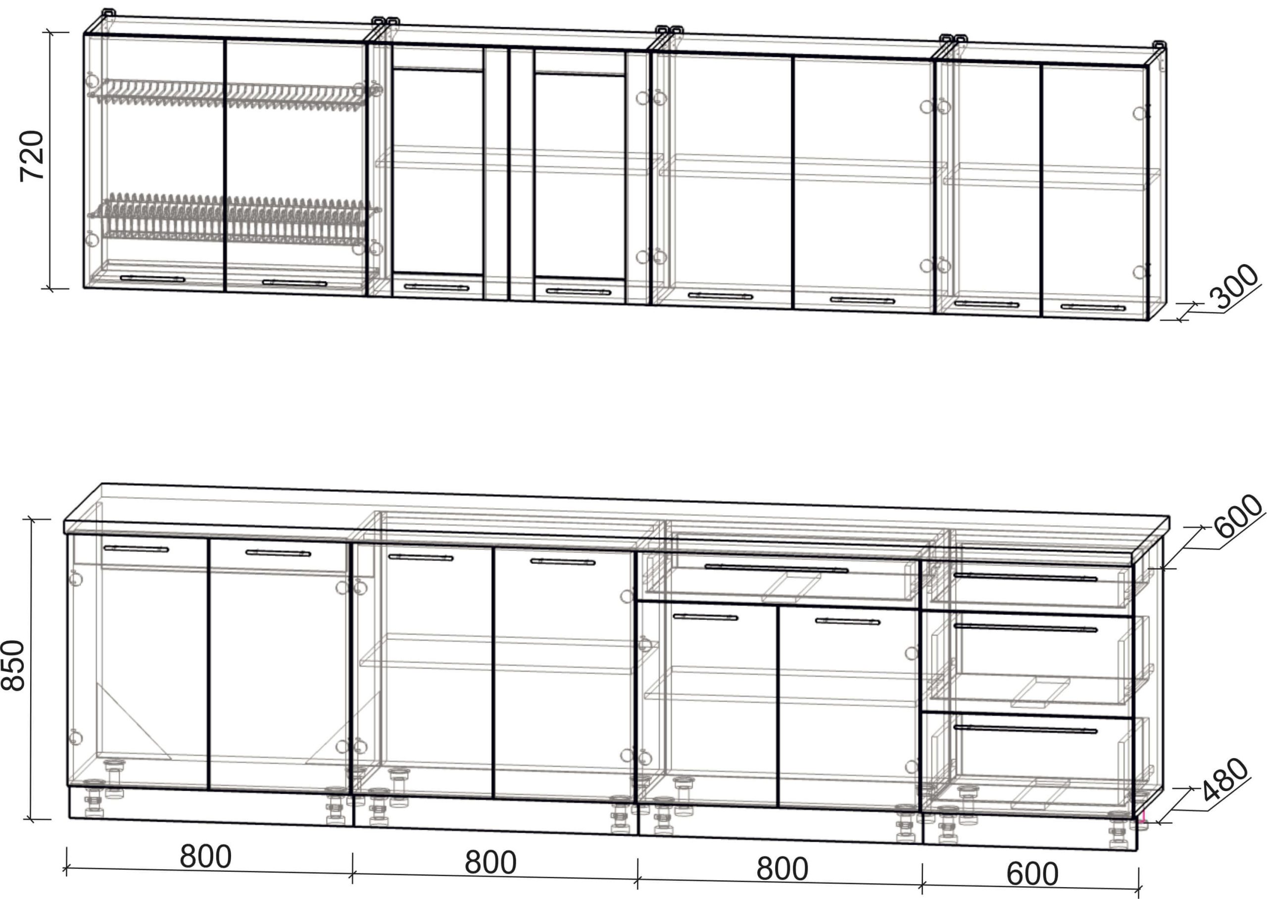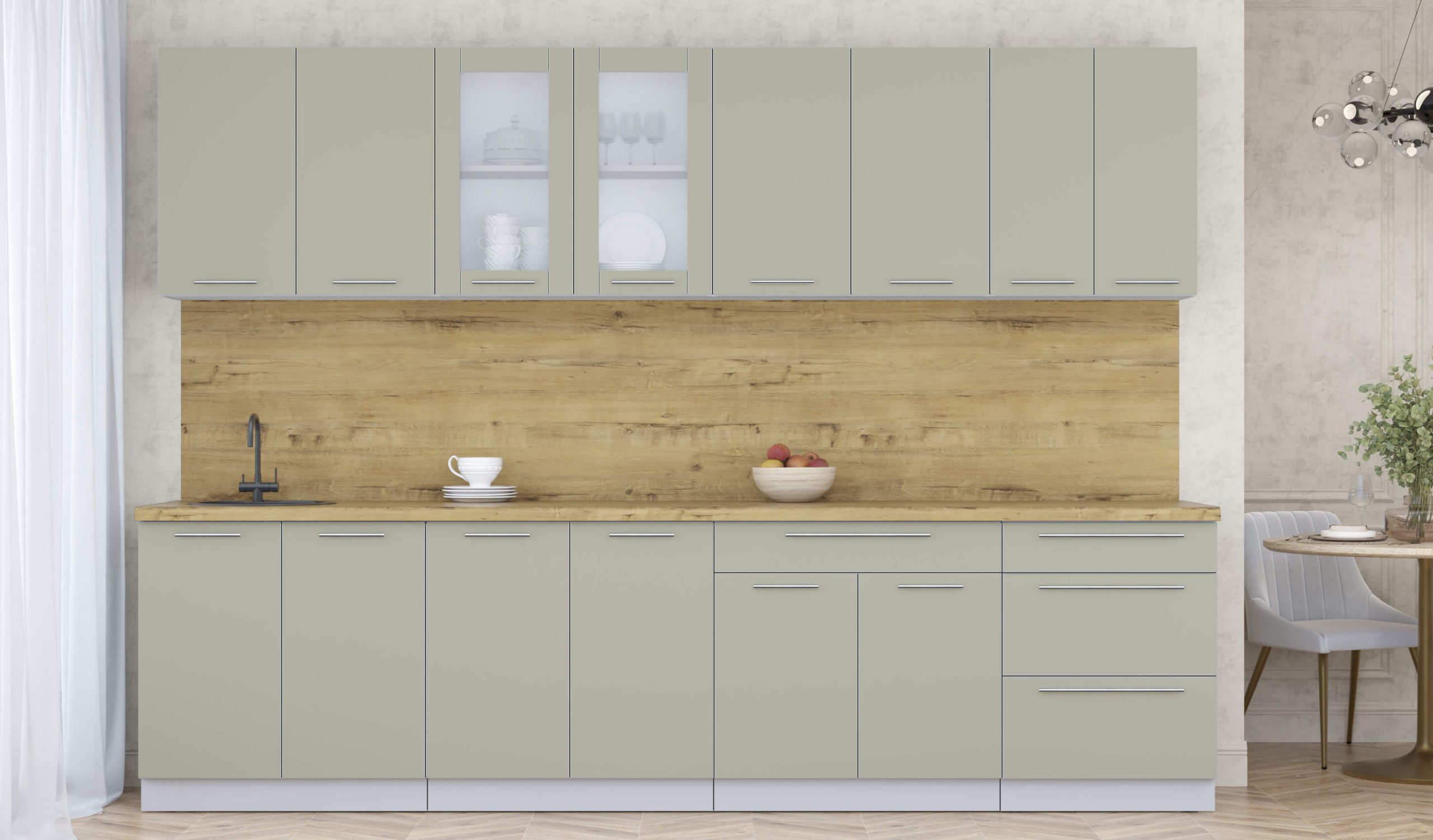 ГОТОВАЯ КУХНЯ ПЛАСТИК 3,0Б (ЛАТТЕ/ ЛАТТЕ) - Yuta.by