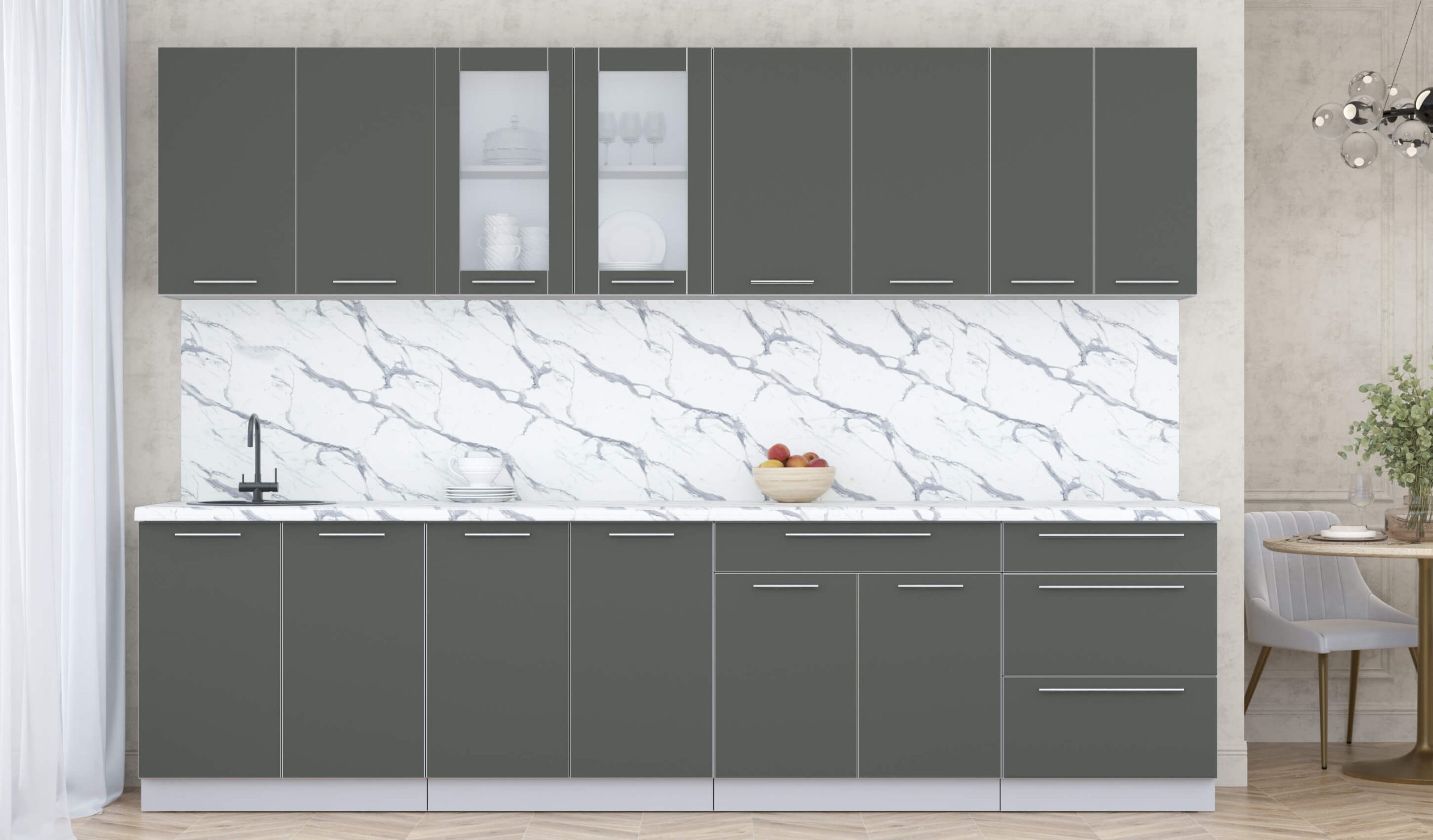 ГОТОВАЯ КУХНЯ ПЛАСТИК 3,0Б (ШТОРМ/ ШТОРМ) - Yuta.by