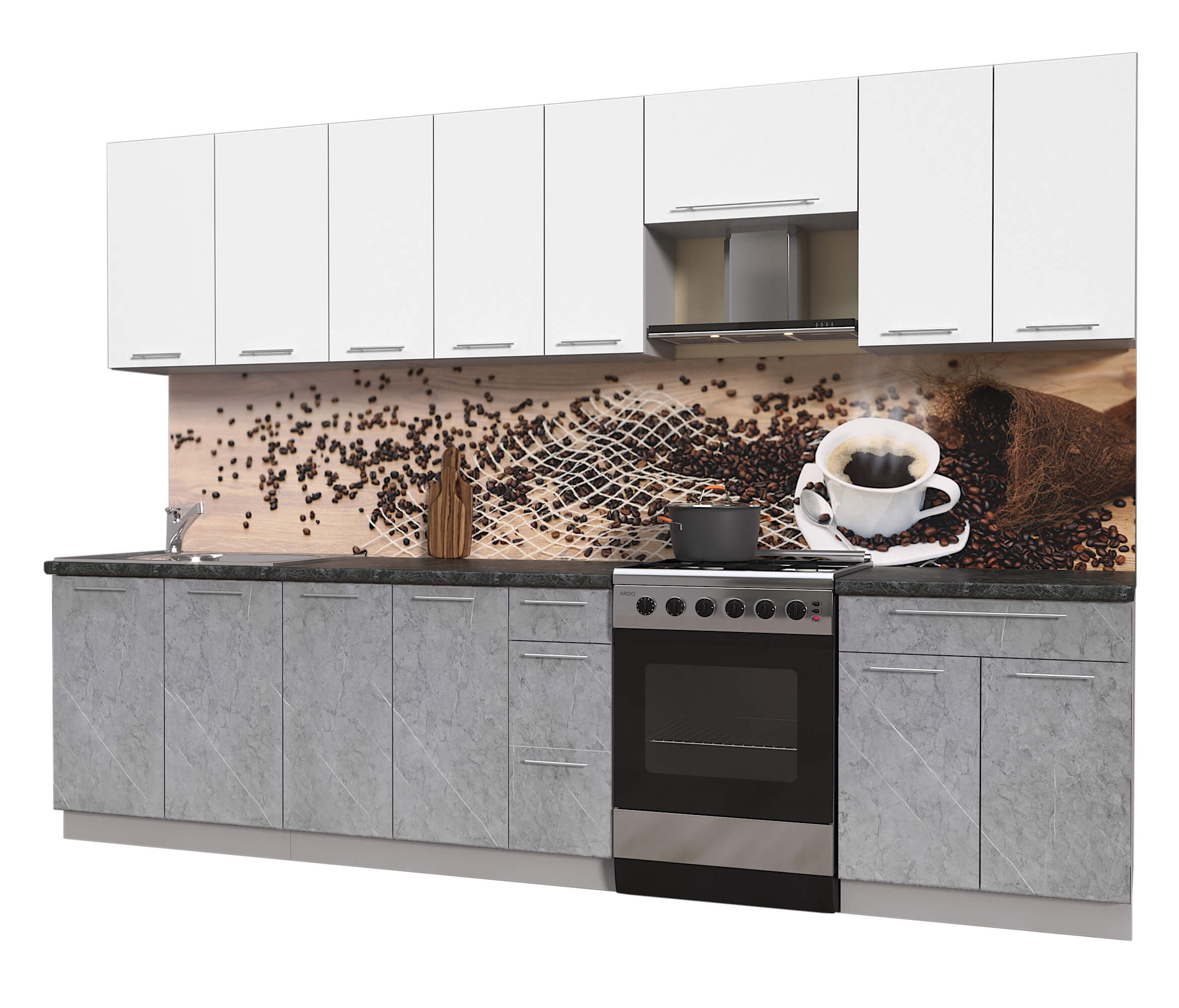 ГОТОВАЯ КУХНЯ ПЛАСТИК 3,1А (БЕЛЫЙ ГЛЯНЕЦ/ МРАМОР) - Yuta.by