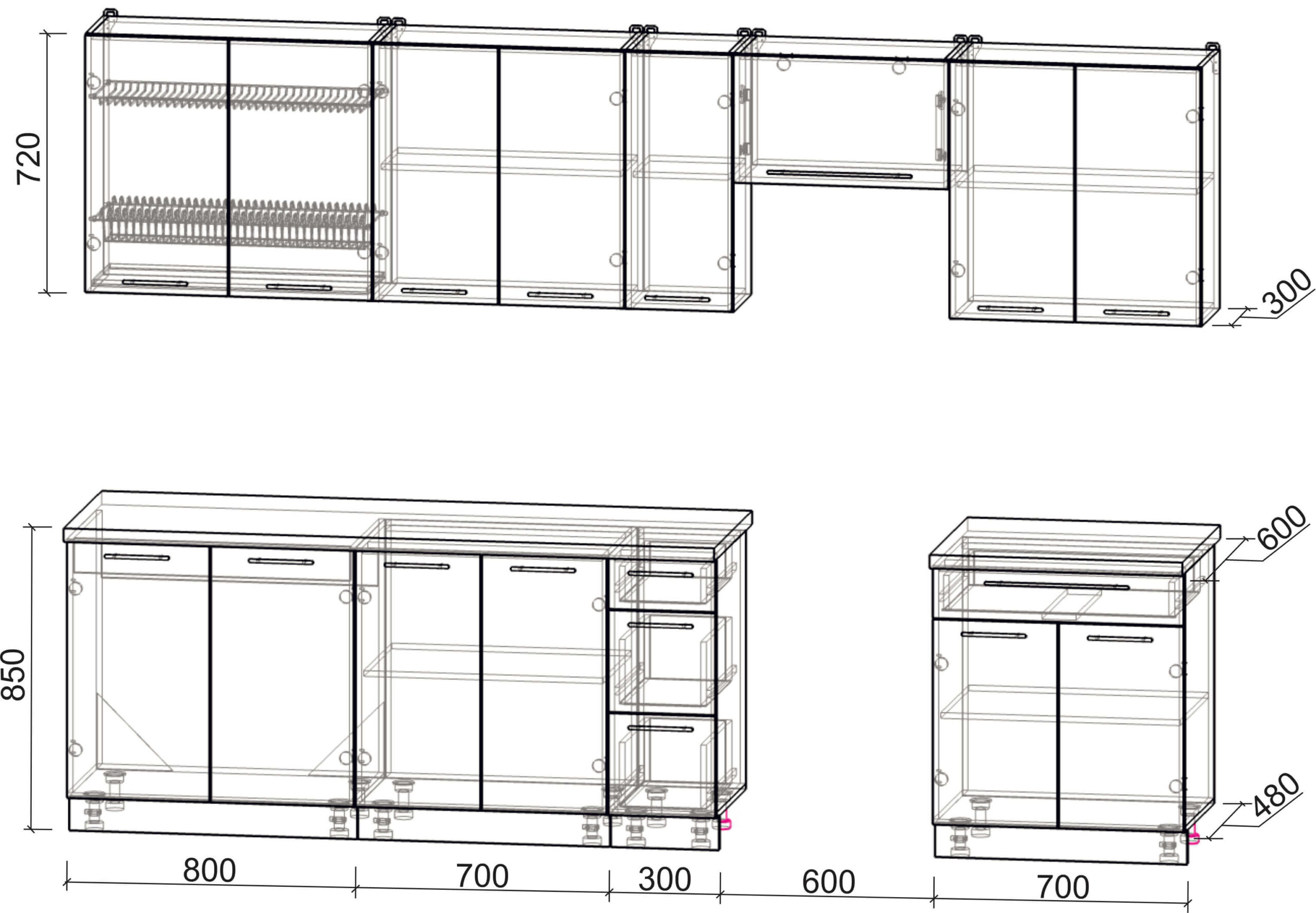 Высота нижних шкафов